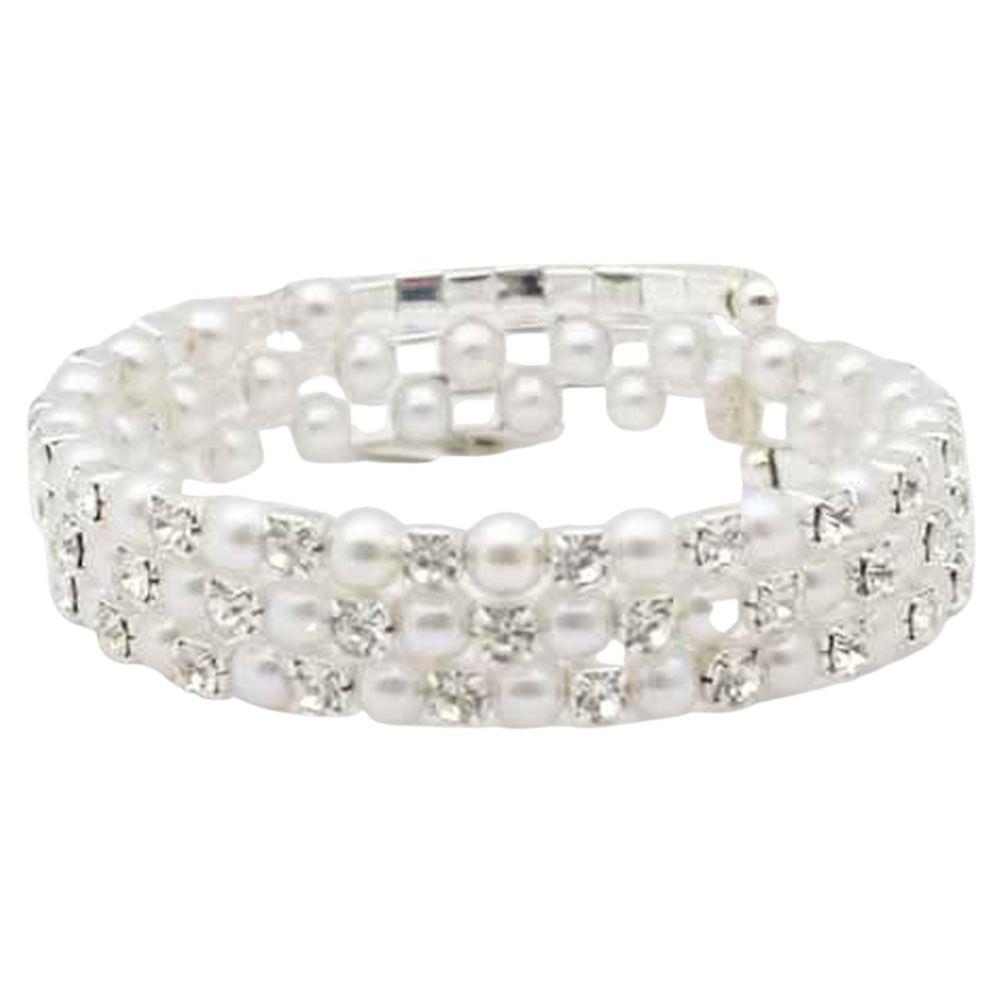 RHINESTONE PEARL METAL SWIRL BANGLE BRACELET