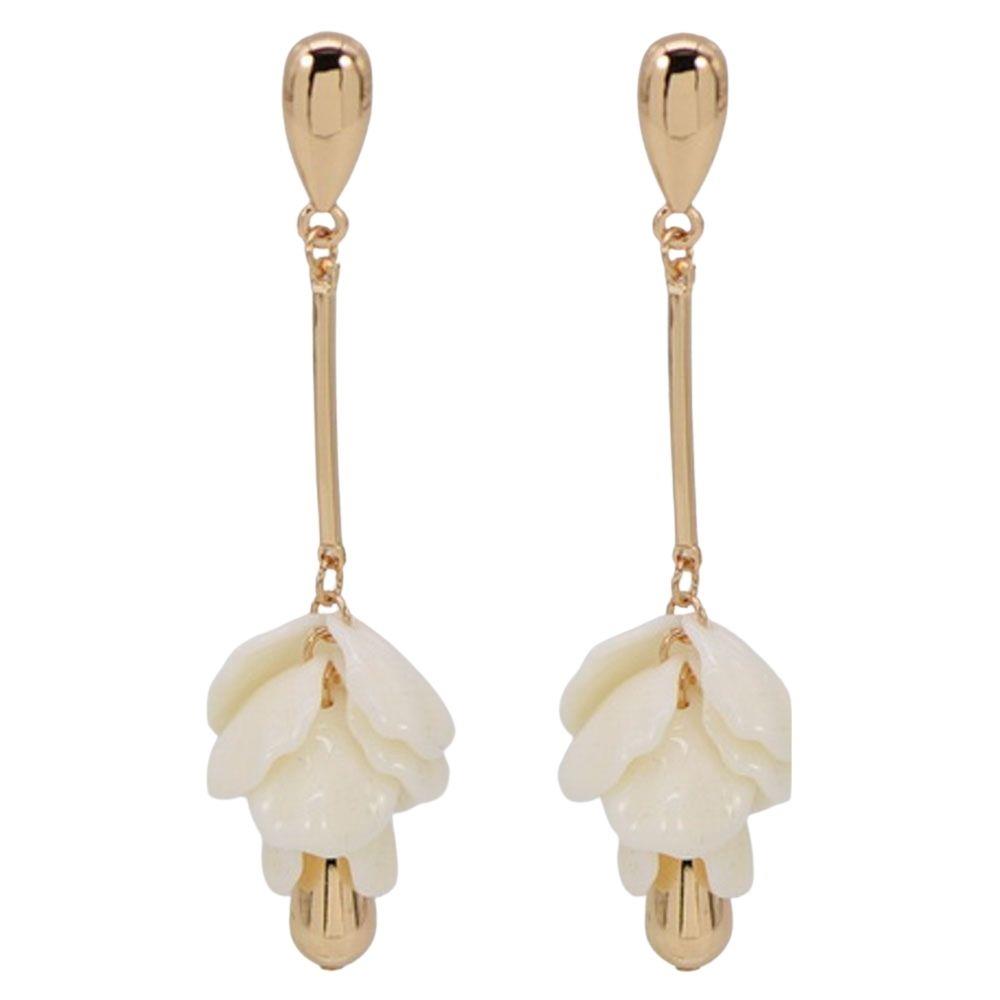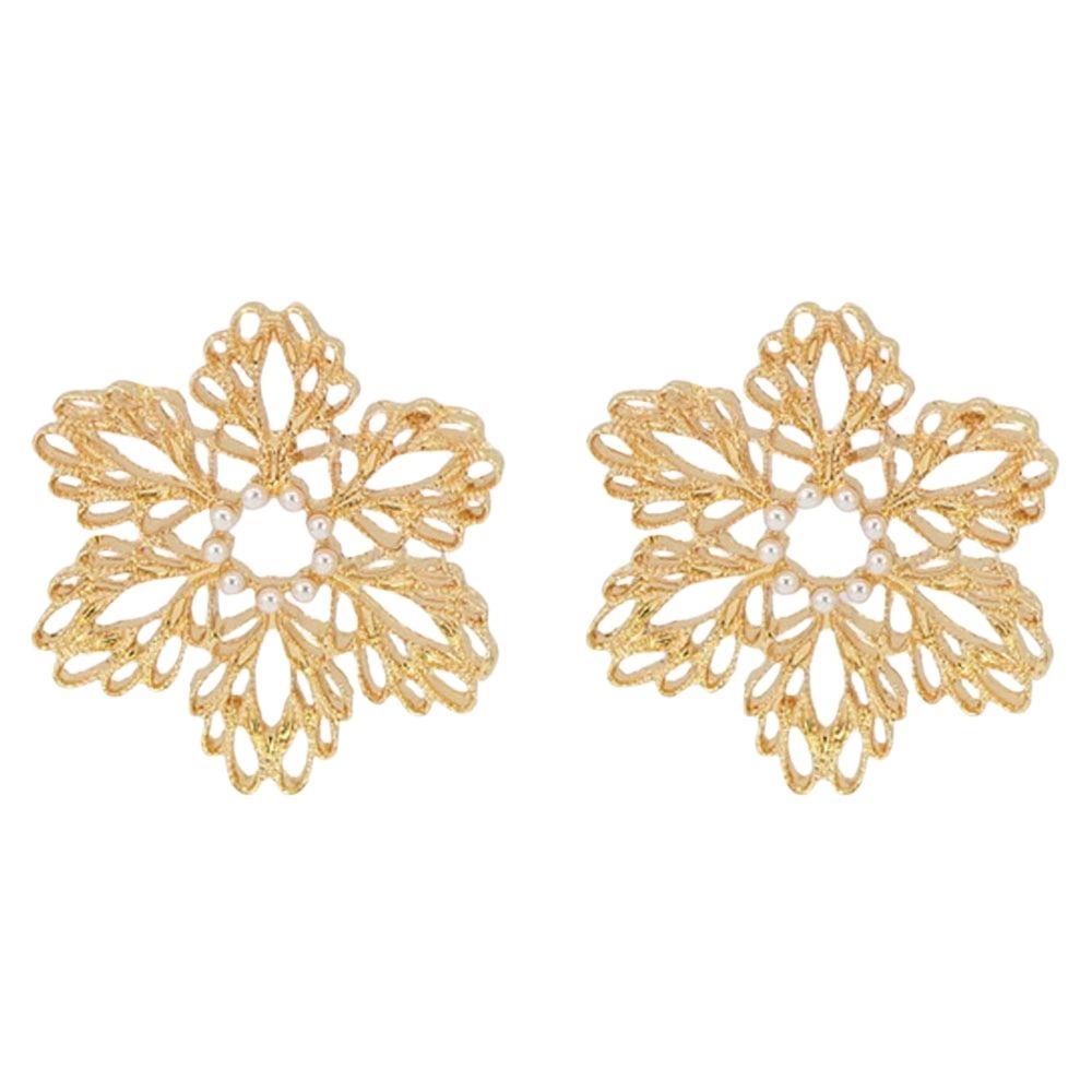 METAL PEARL FLOWER STATEMENT DROP EARRING