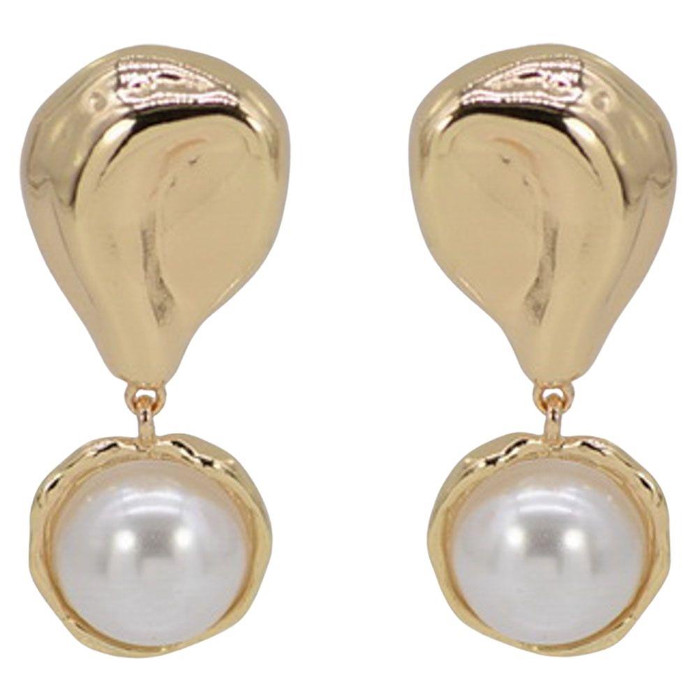 METAL PEARL TEARDROP DROP EARRING
