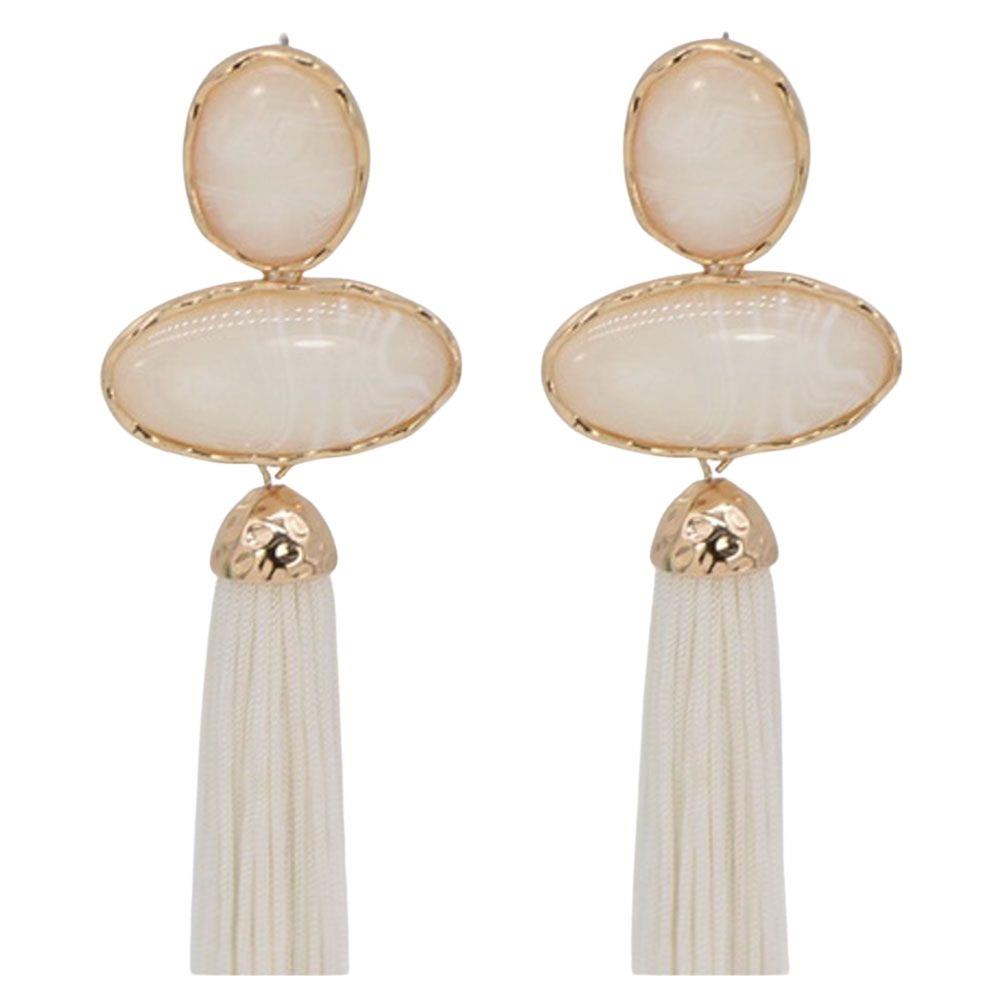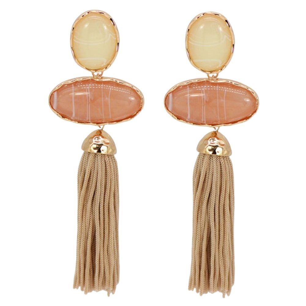 RESIN OVAL TASSEL STATEMENT DROP EARRING