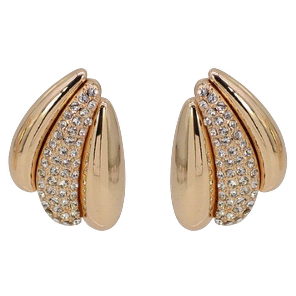 METAL FLOWER RHINESTONE POST EARRINGS