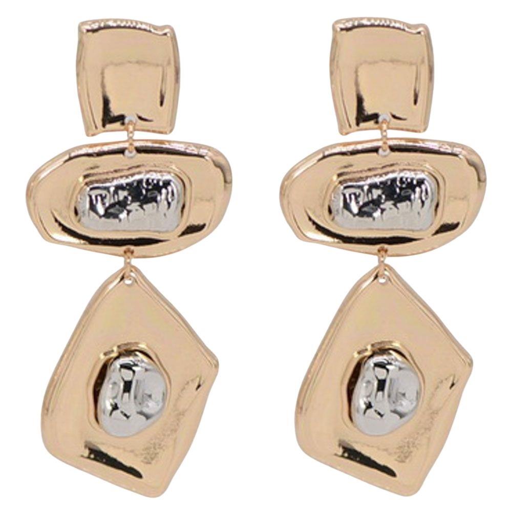 TWO TONE METAL GEOMETRIC DROP EARRING