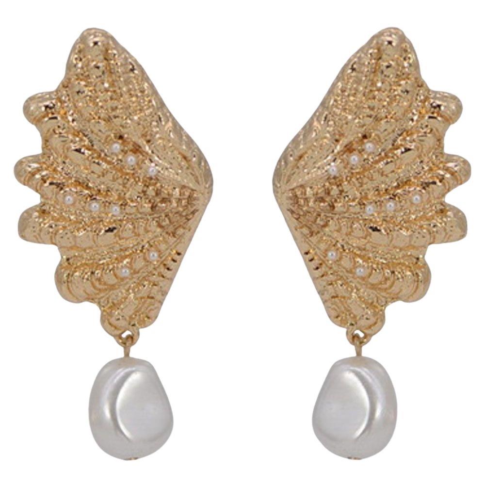 METAL FAN PEARL STATEMENT DROP EARRING