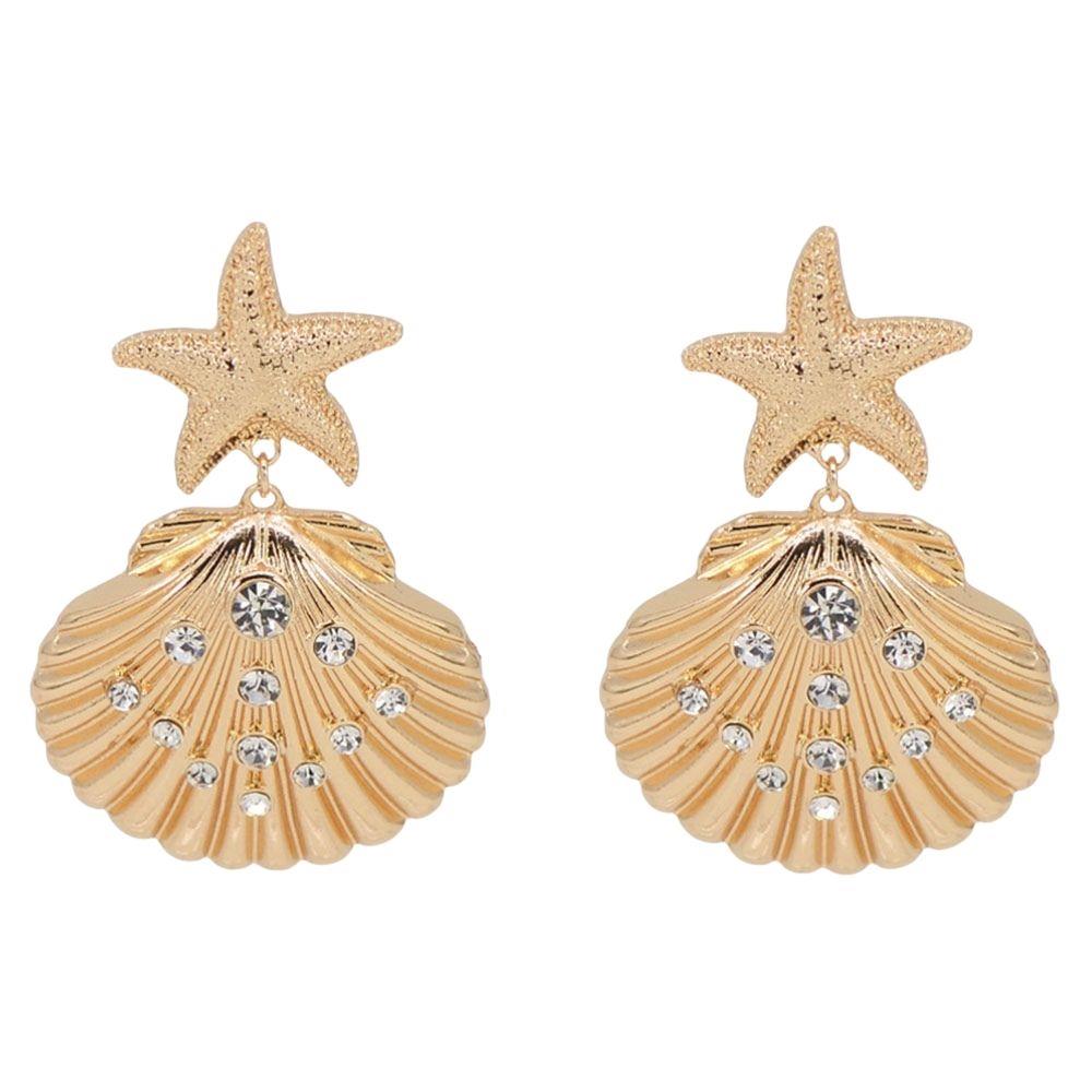 METAL STAR SHELL SEALIFE DROP EARRING