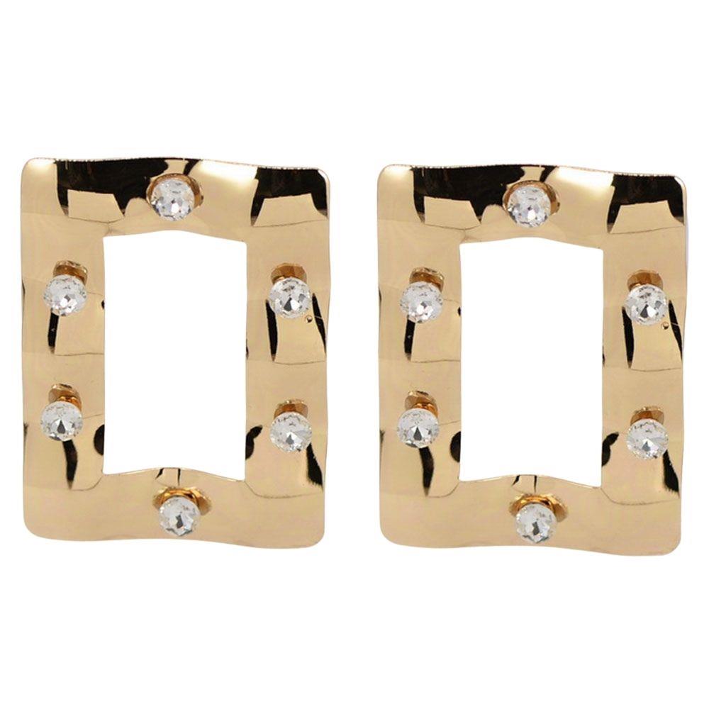 BIG SQUARE METAL RHINESTONE STATEMENT POST EARRINGS