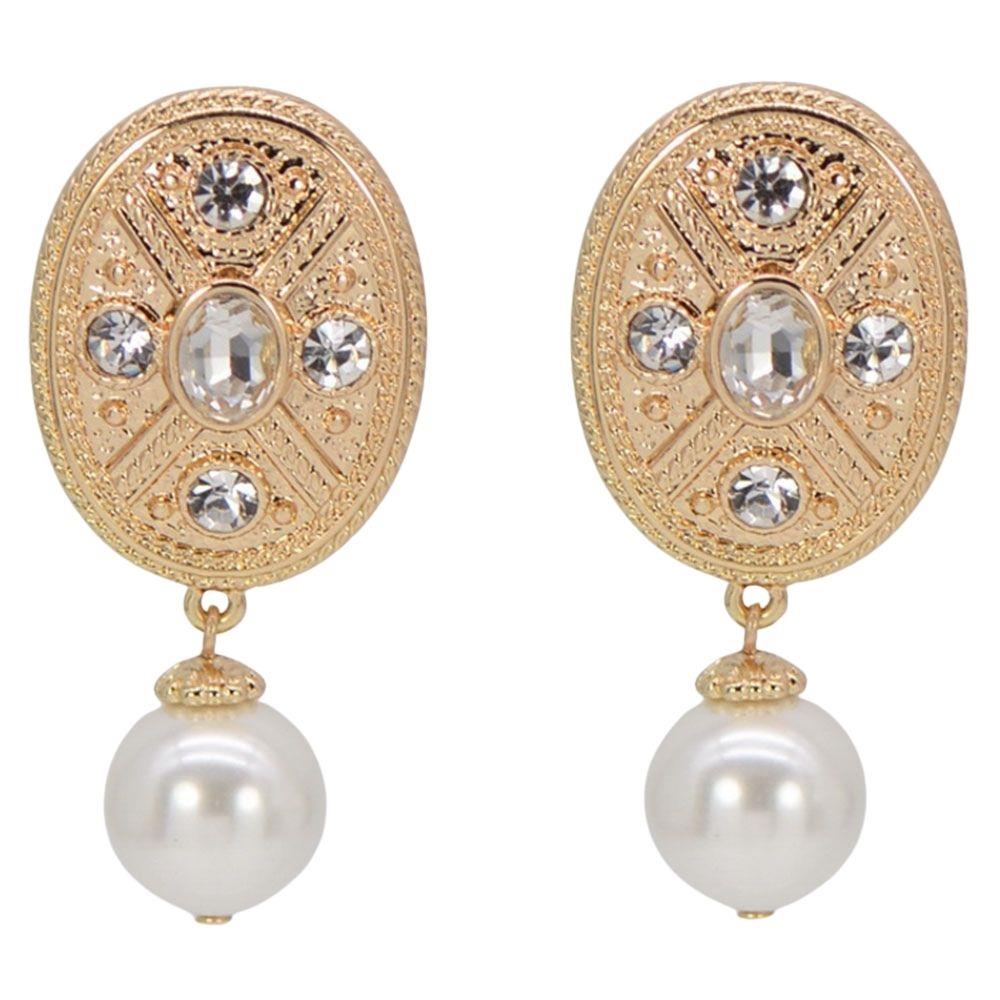 RHINESTONE OVAL PEARL DROP EARRING