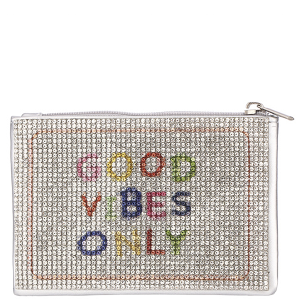 GOOD VIBES ONLY RHINESTONE COIN PURSE POUCH BAG
