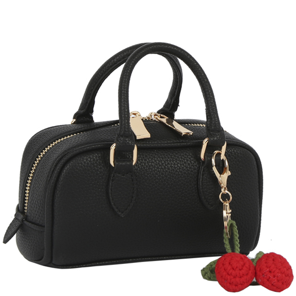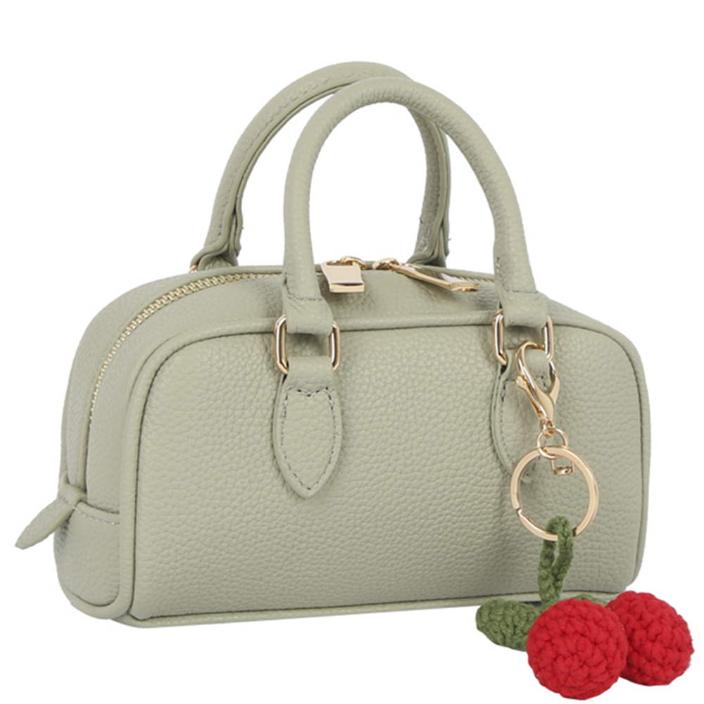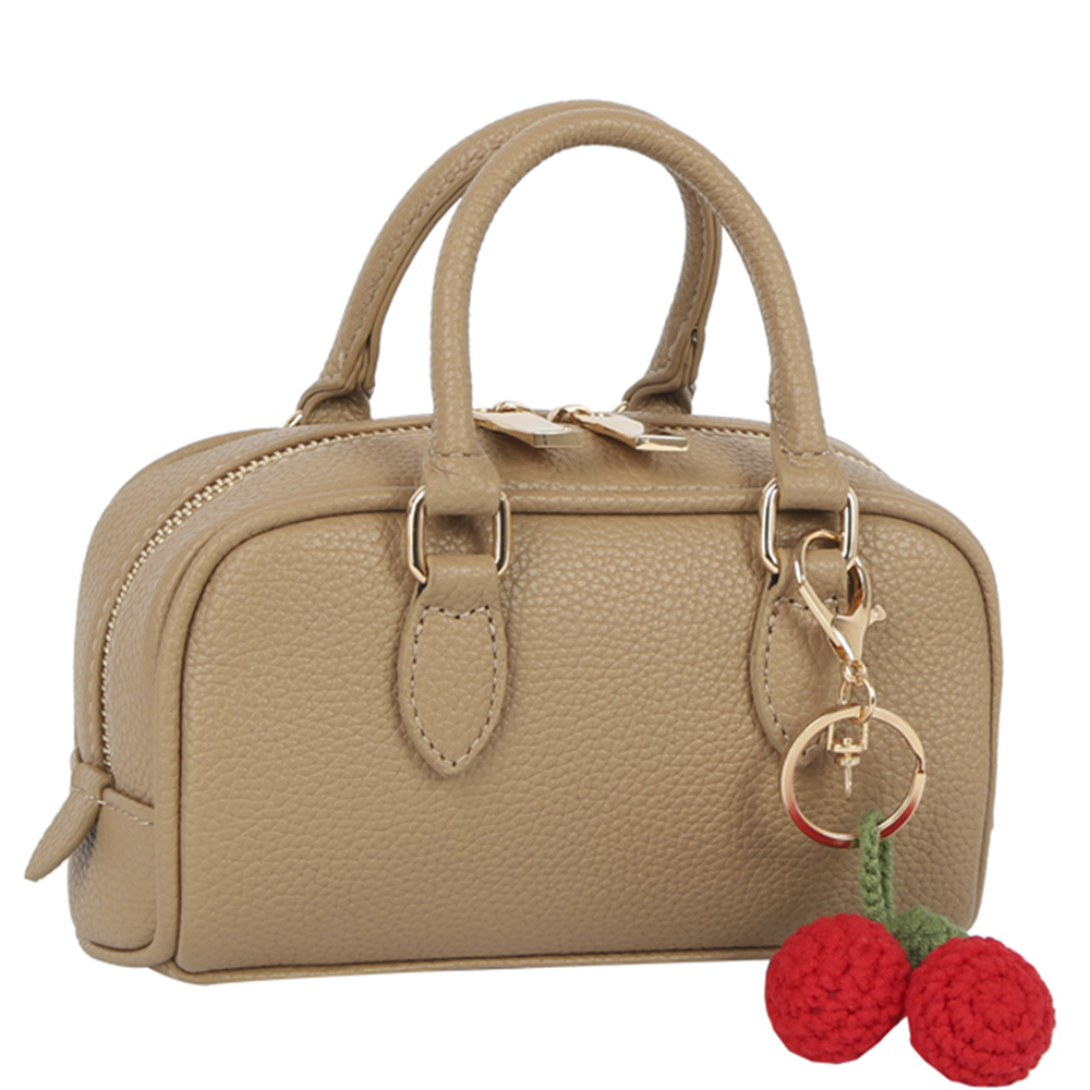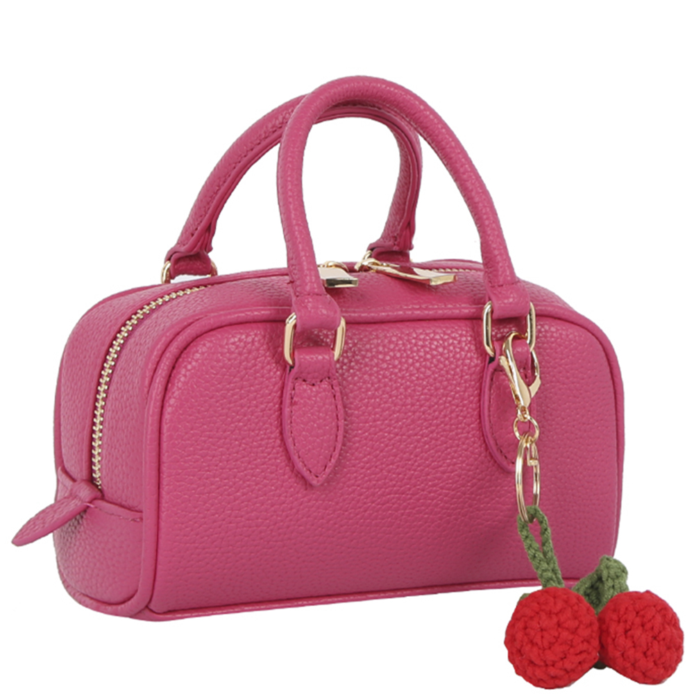 TEXTURED COLOR SATCHEL W CHERRY KEYCHAIN