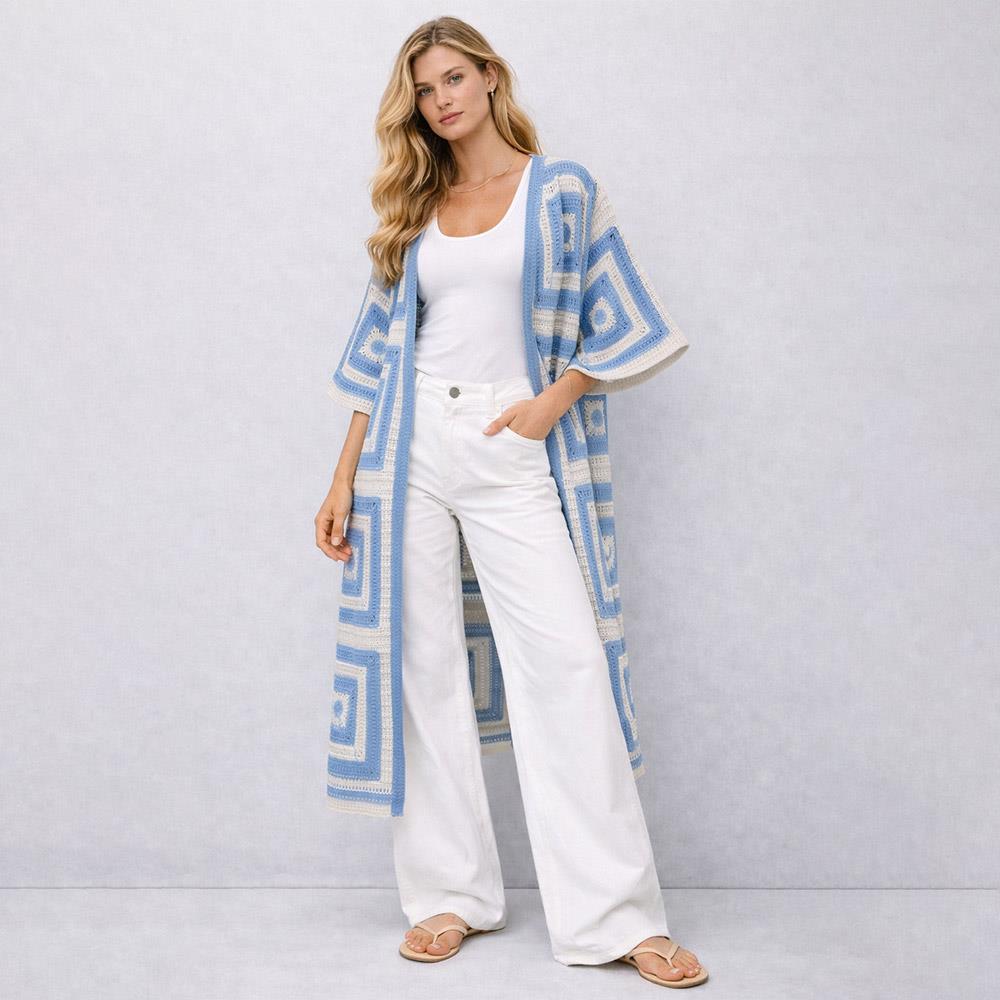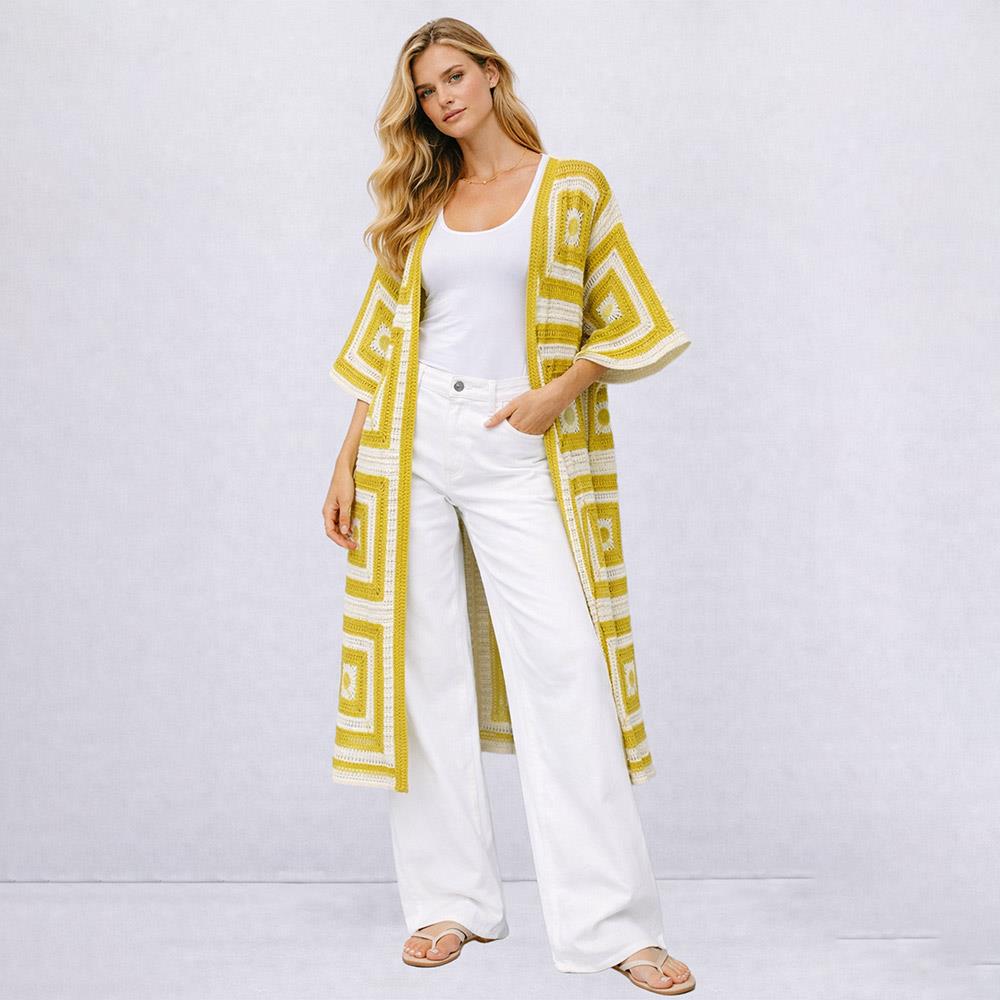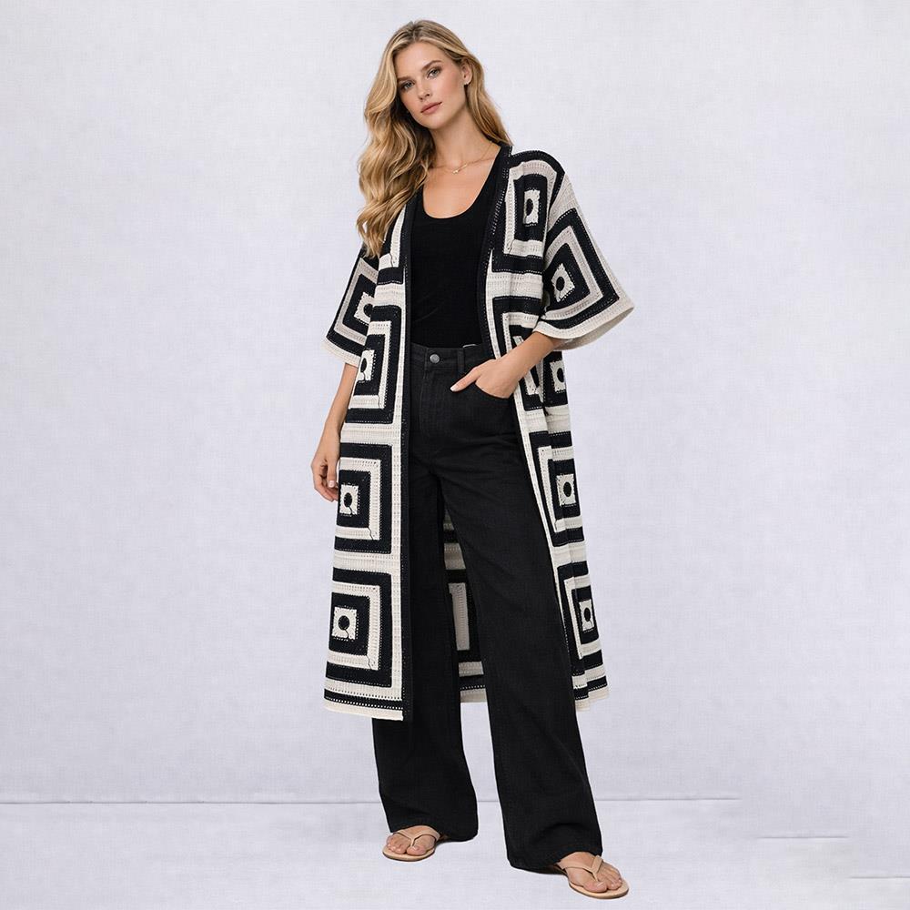 SQUARE PATTERN CROCHET CARDIGAN