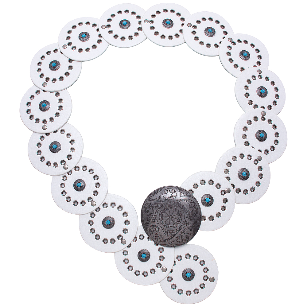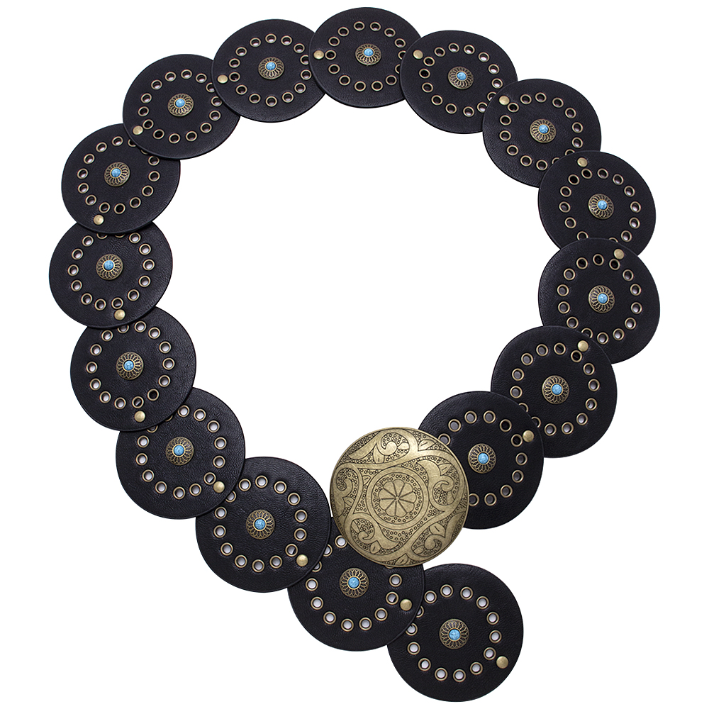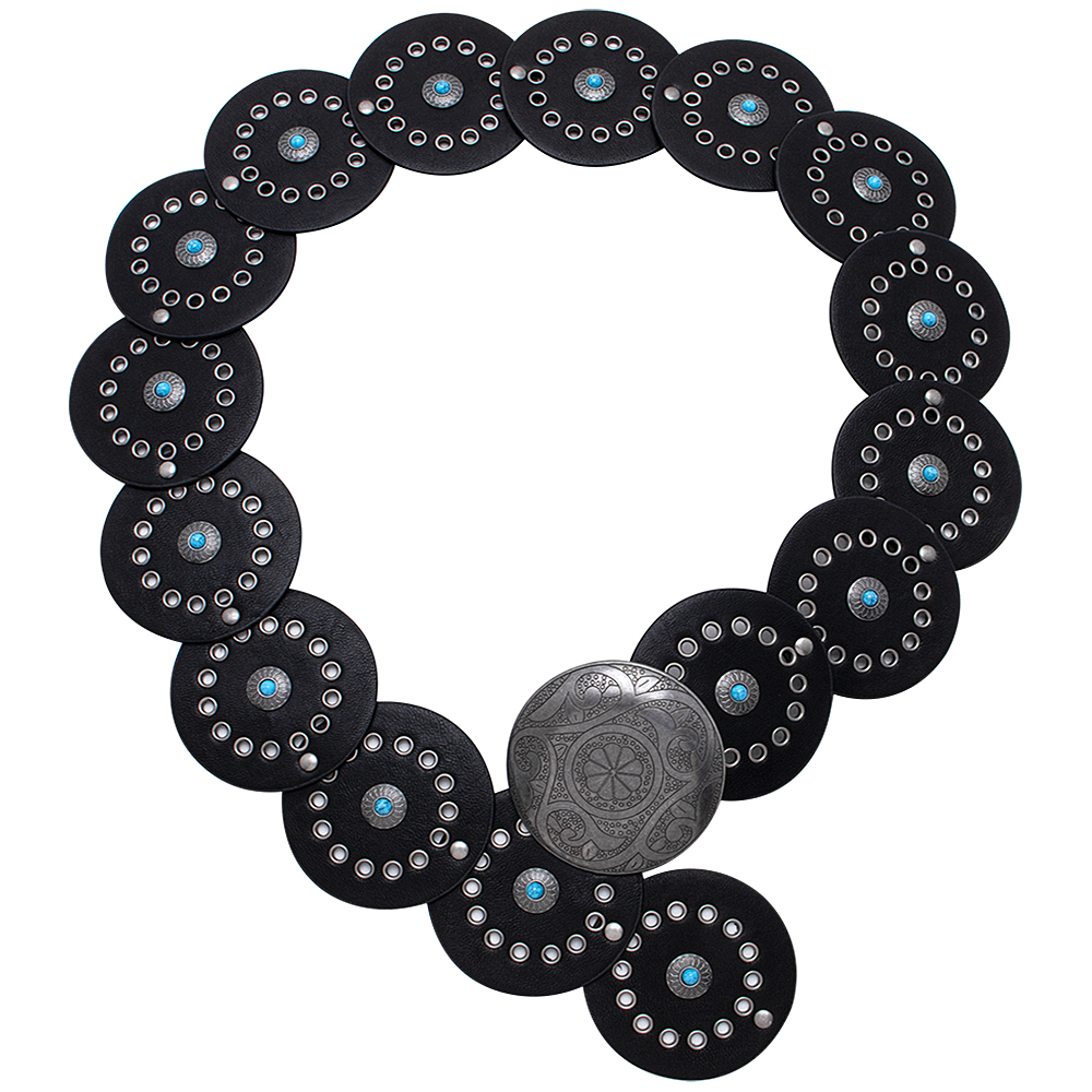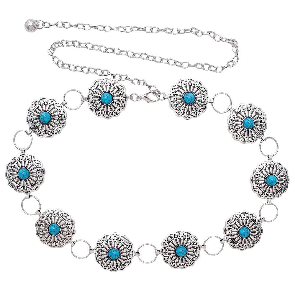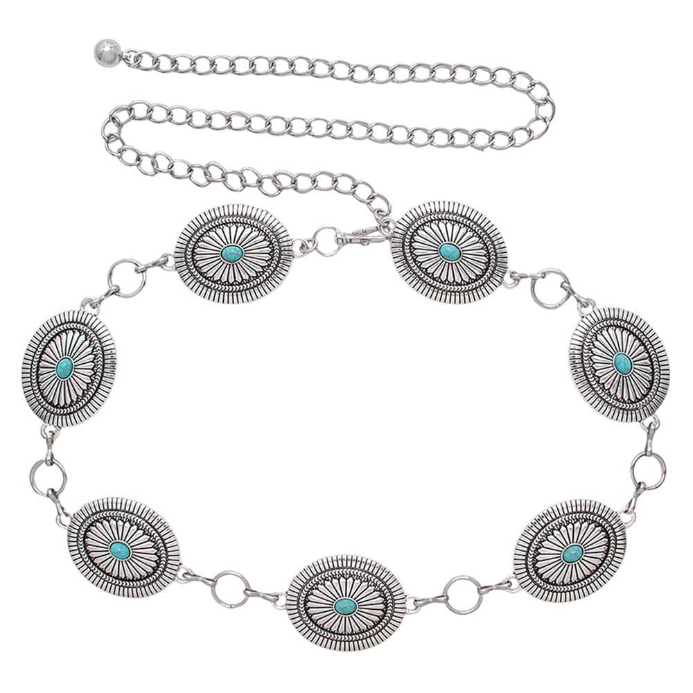 WESTERN METAL ENGRAVED CONCHO TURQUOISE CHAIN BELT