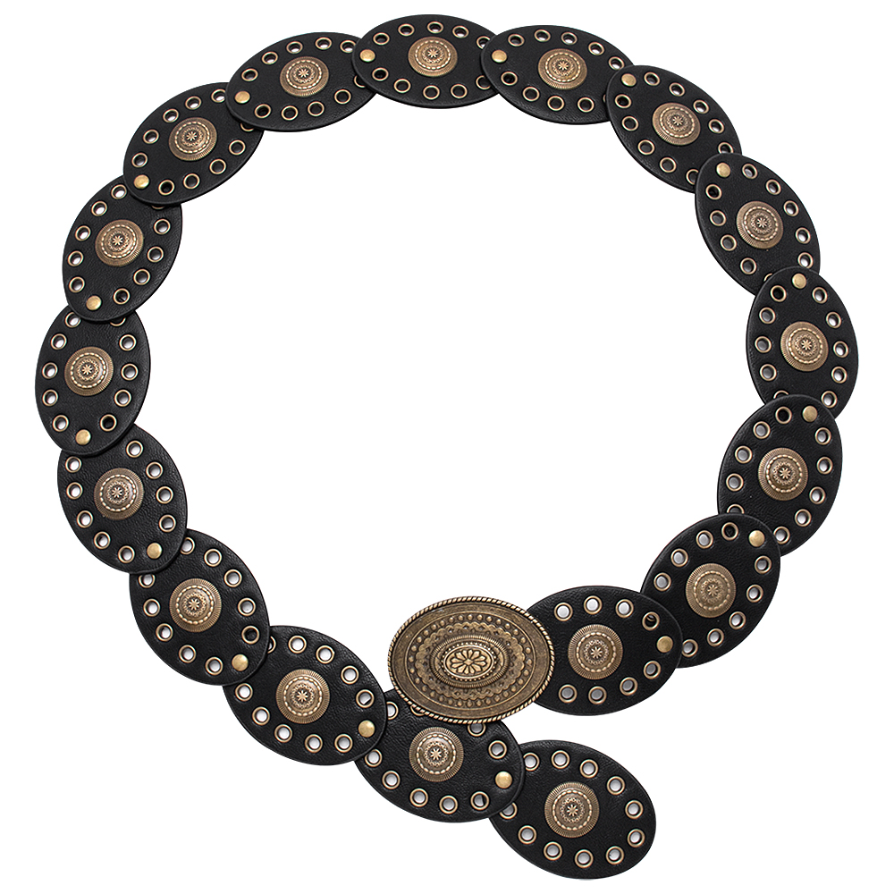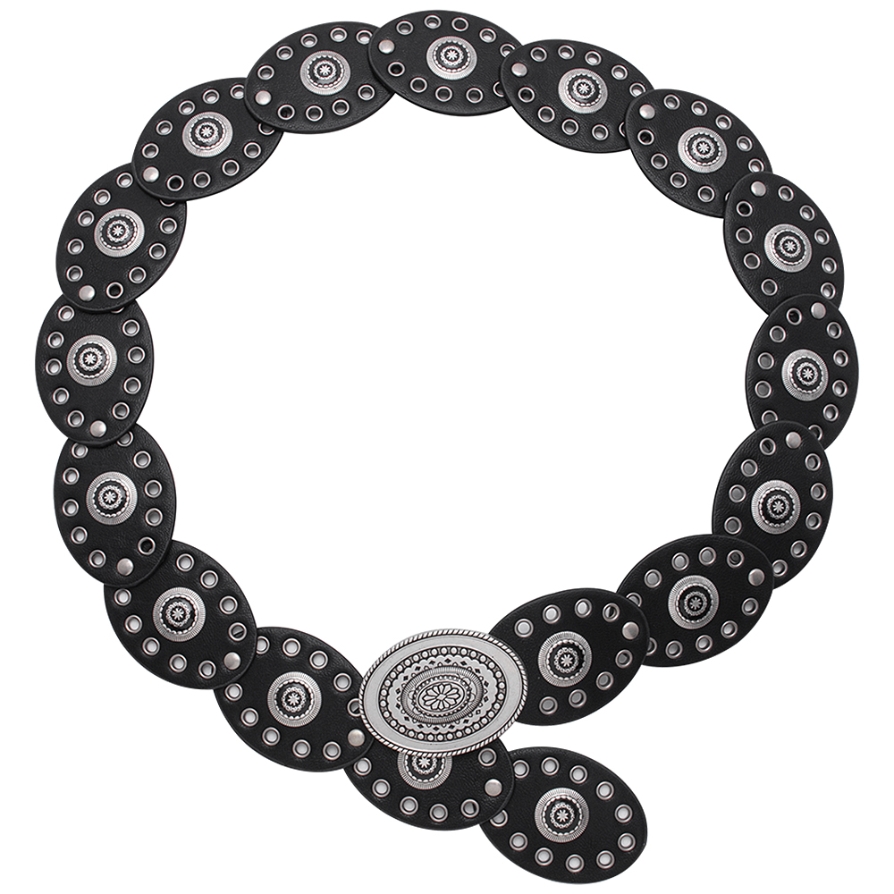 Y2K METAL WESTERN CONCHO EMBOSSED OVAL BELT