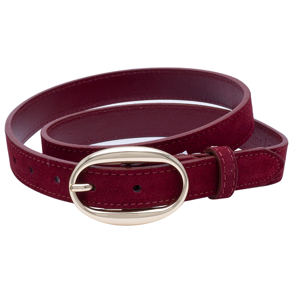 GENUINE SUEDE LEATHER OVAL METAL BUCKLE BELT