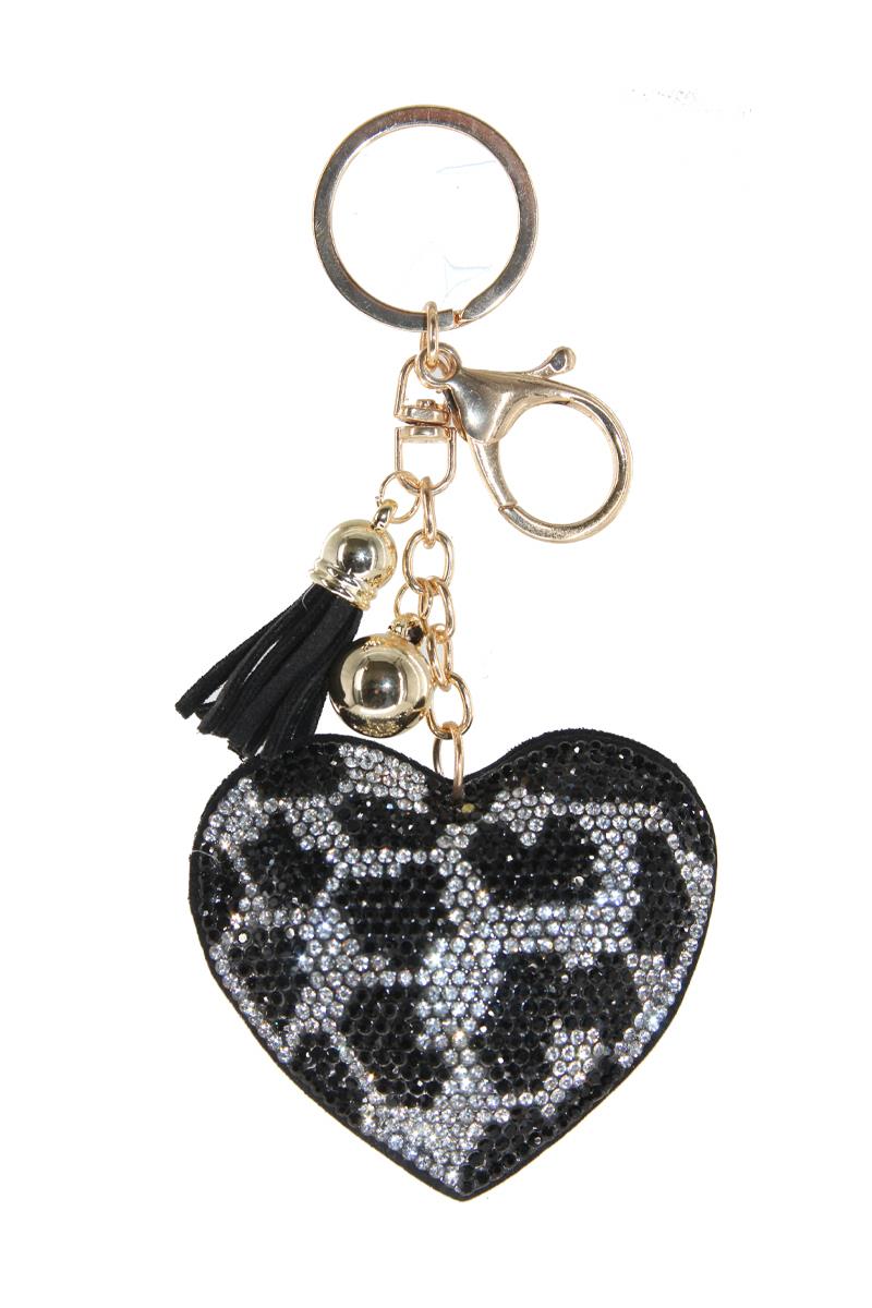 RHINESTONE LEOPARD HEART TASSEL KEY CHAIN