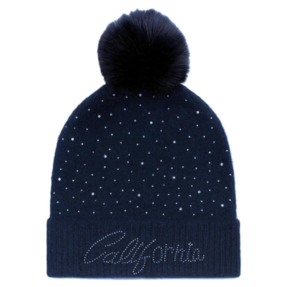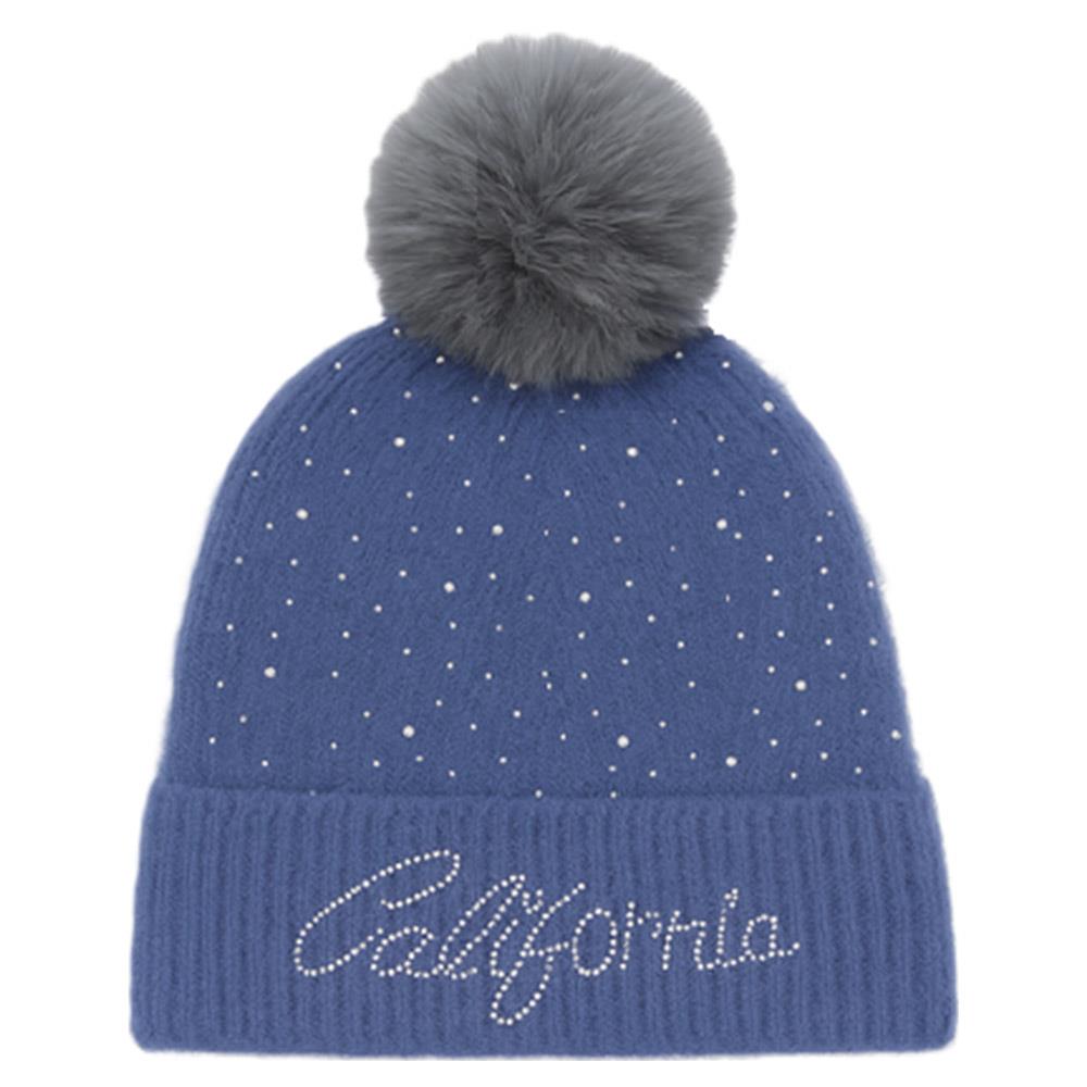 RHINESTONE CALIFORNIA LOGO WITH POMPOM BEANIE