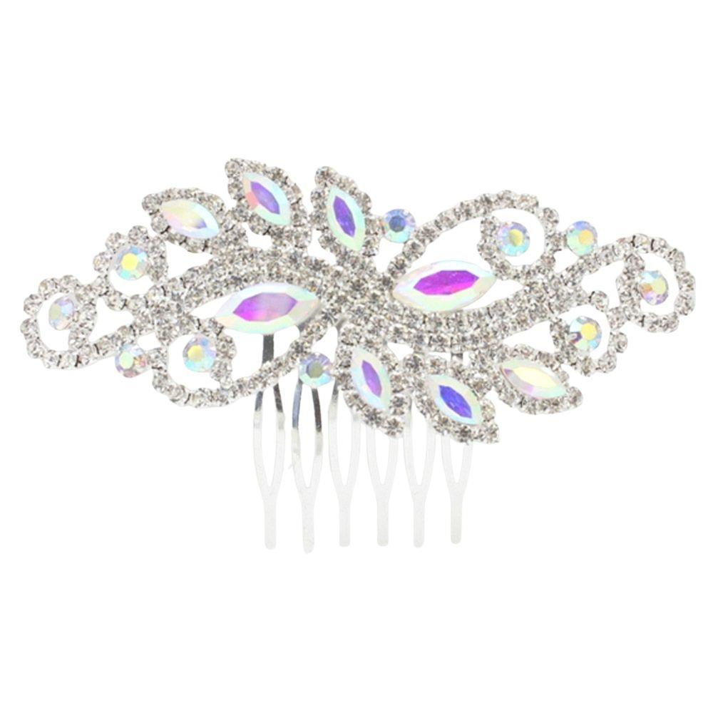 CUBIC ZIRCONIA STONE LEAF HAIR COMB