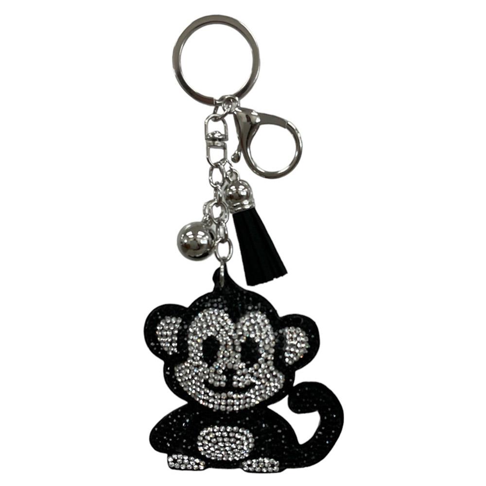 RHINESTONE MONKEY BAG CHARM KEYCHAIN WITH TASSEL
