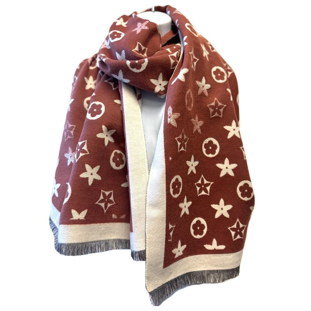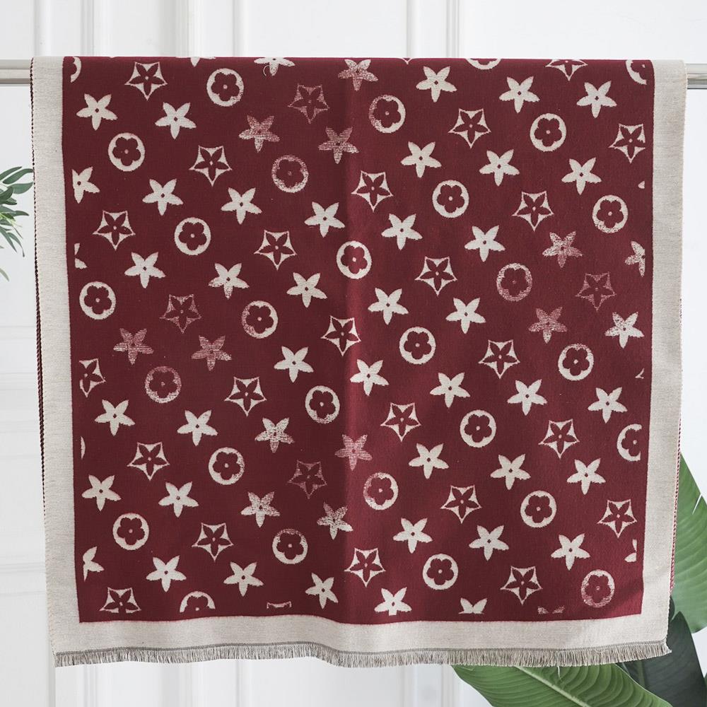 FLOWER MONOGRAM PATTERN FRINGE EDGE LIGHTWEIGHT OBLONG SCARF