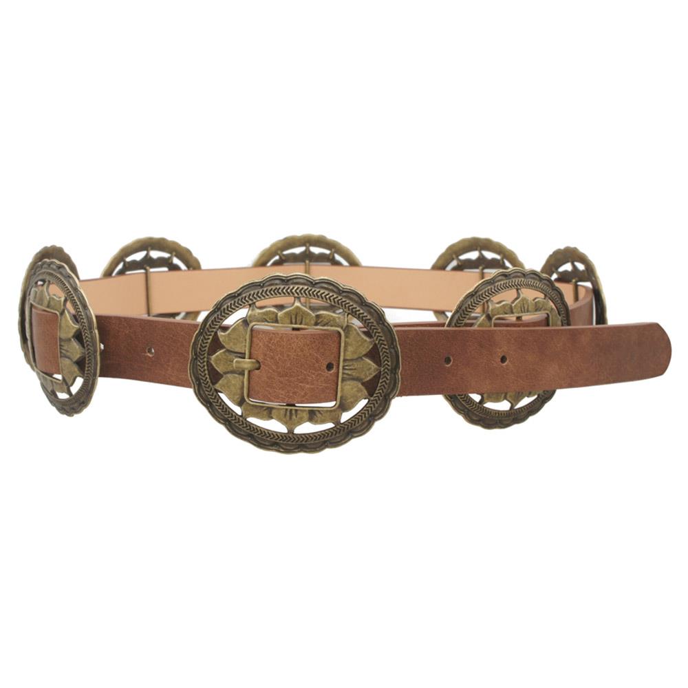 SUNFLOWER CONCHO LINK COW HAIR PU BELT