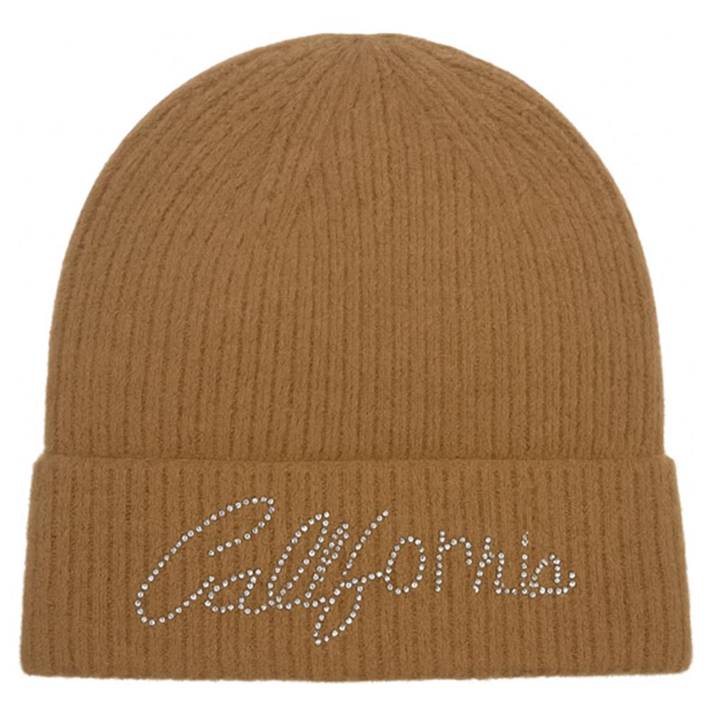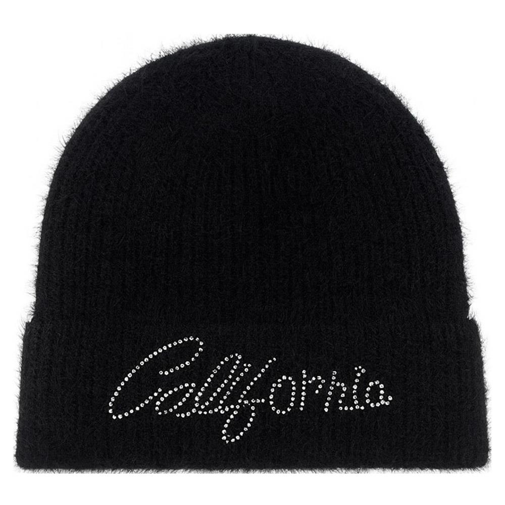 RHINESTONE CALIFORNIA LETTERING KNIT BEANIE HAT