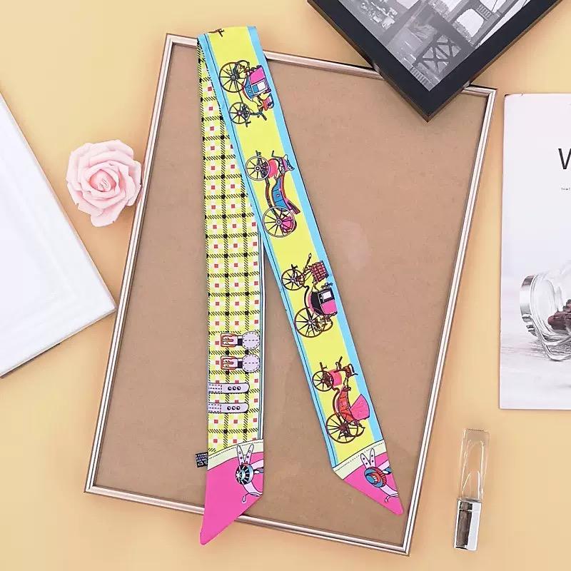 CARRIAGE RIDER PRINT SILKY SKINNY SCARF