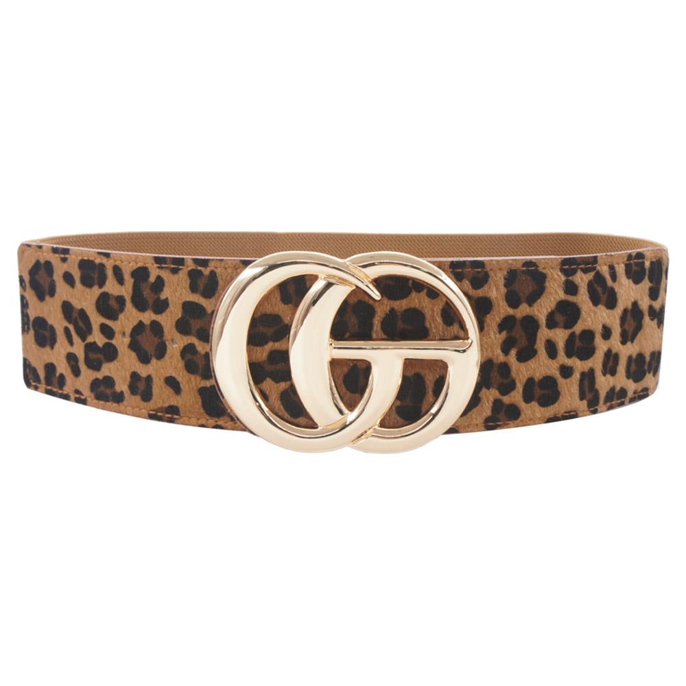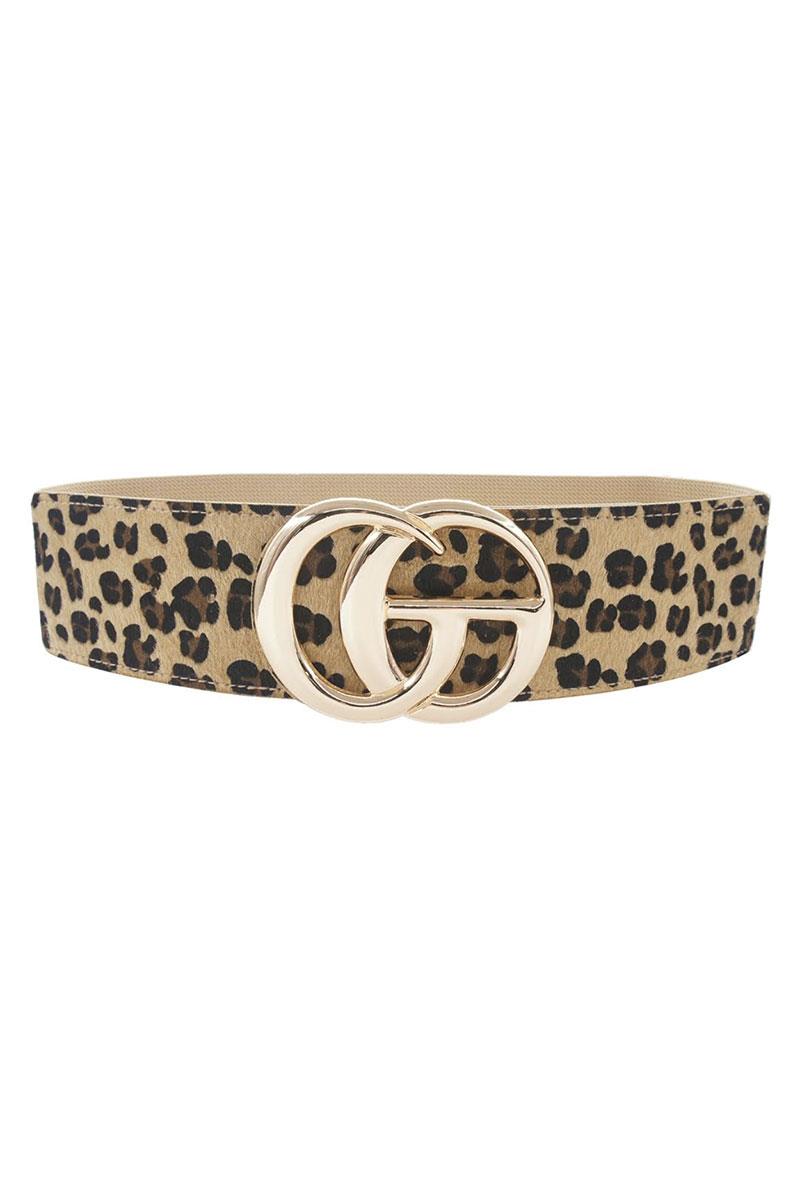METAL BUCKLE LEOPARD ELASTIC BELT