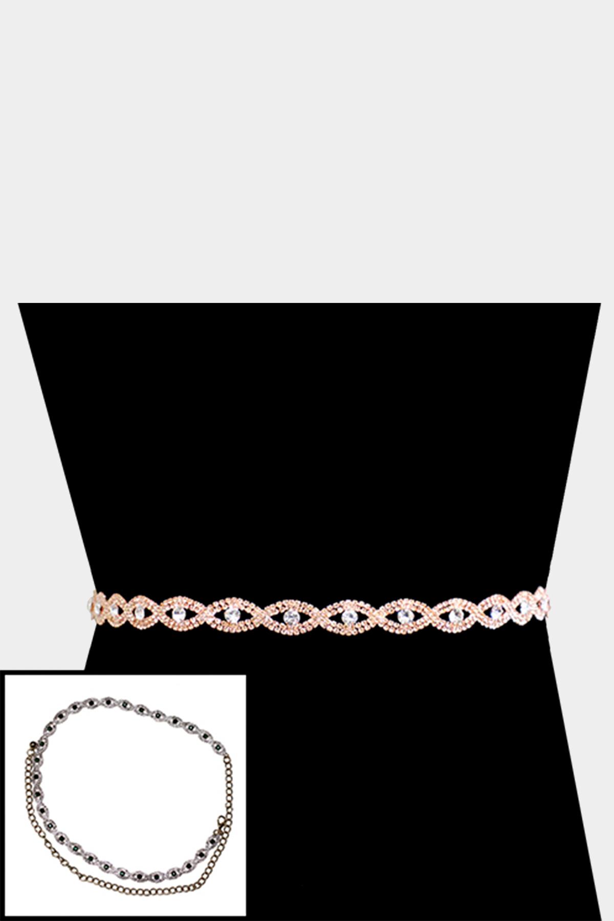 FF BUCKLE WITH CHAIN AND RHINESTONE TRIM DESIGN BELT