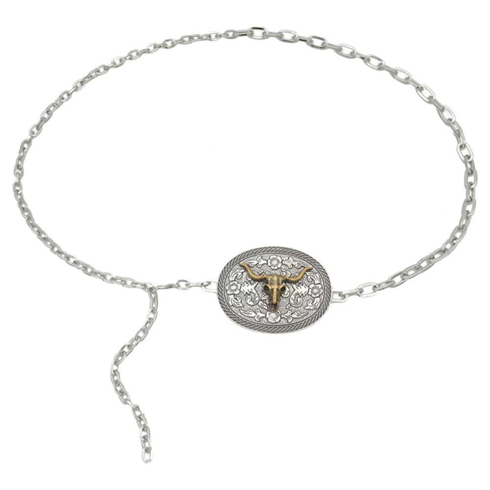 LONGHORN COW SKULL OVAL CONCHO WESTERN CHAIN BELT