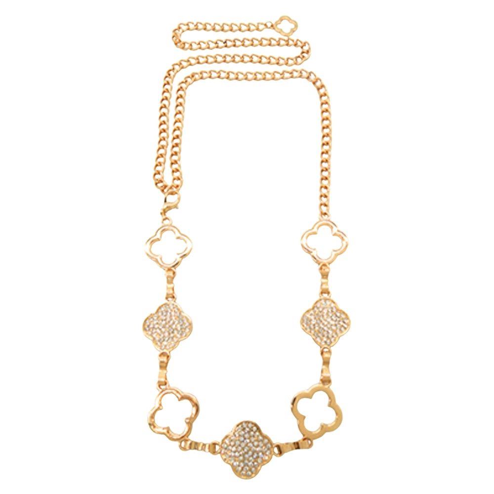 METAL RHINESTONE FLOWER ACCENT CHAIN LINK BELT
