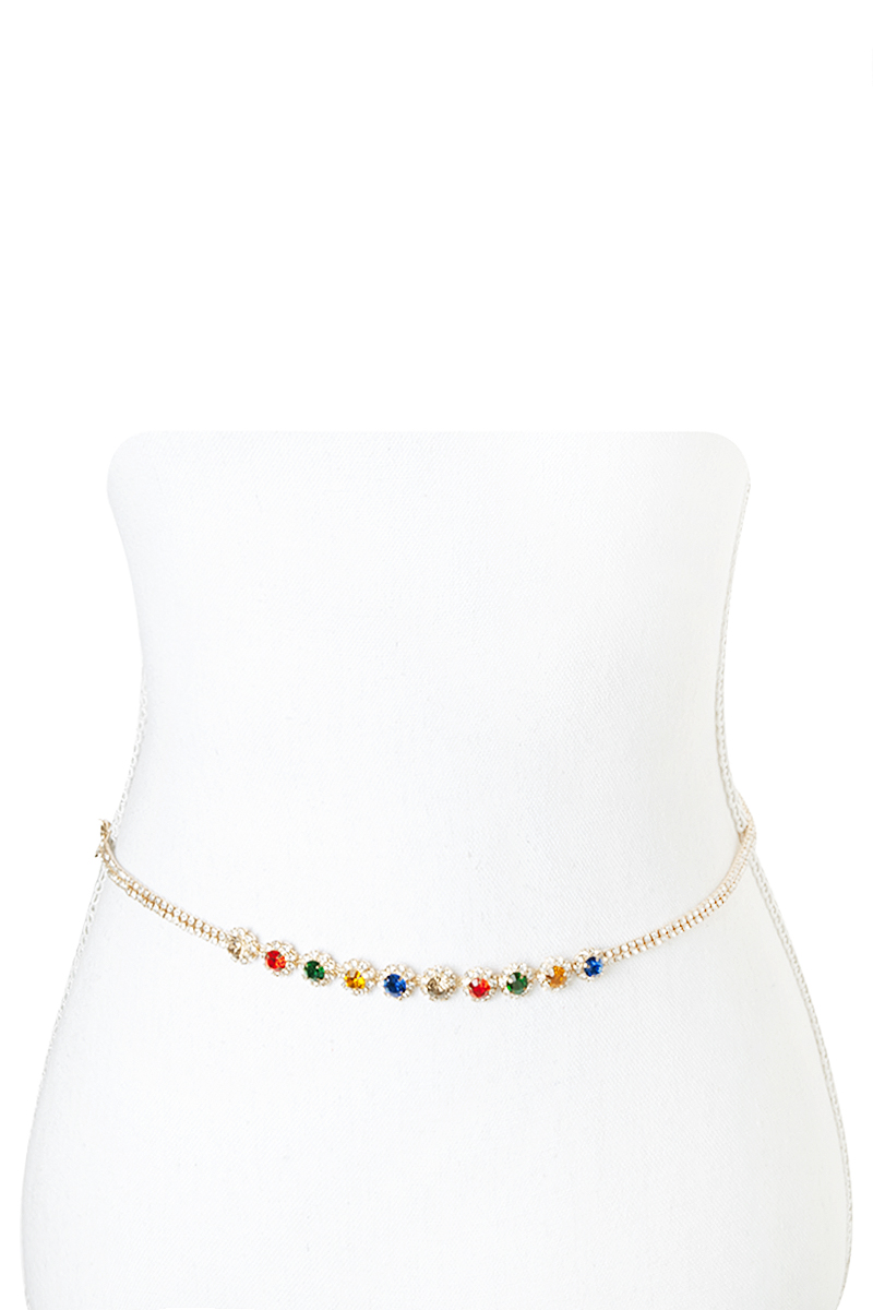 RHINESTONE CRYSTAL MINI STRAND METAL BELT