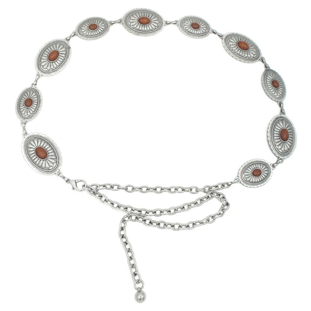 WESTERN METAL ENGRAVED OVAL CONCHO CHAIN BELT