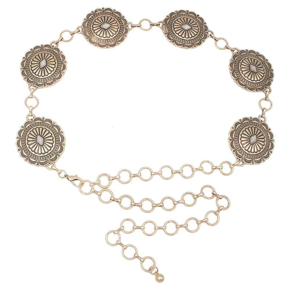 MANDALA FILIGREE METAL DISC HIP CHAIN BELT