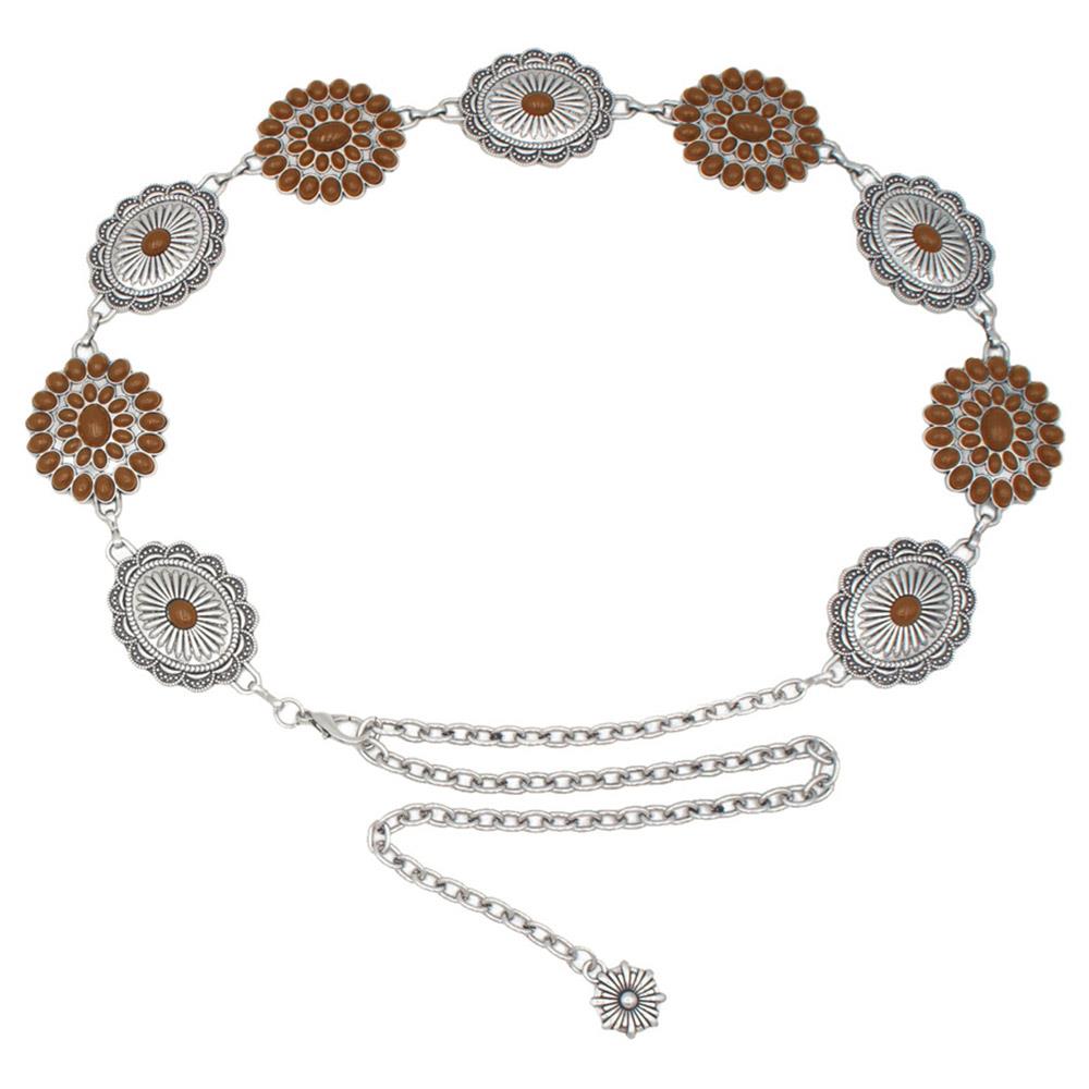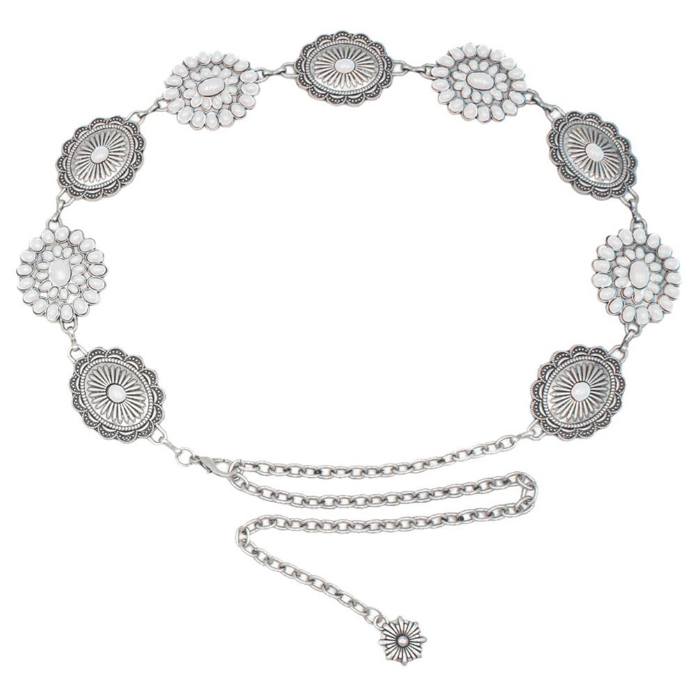 WESTERN-INSPIRED FLORAL OVAL CONCHO CHAIN BELT