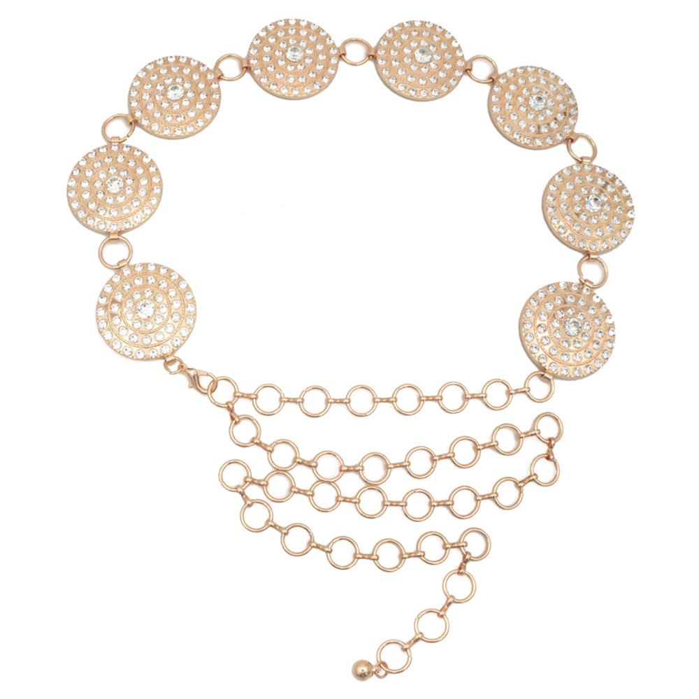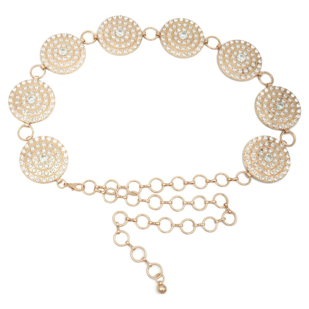 PLUS SIZE RHINESTONE DISC WHEEL CHAIN BELT