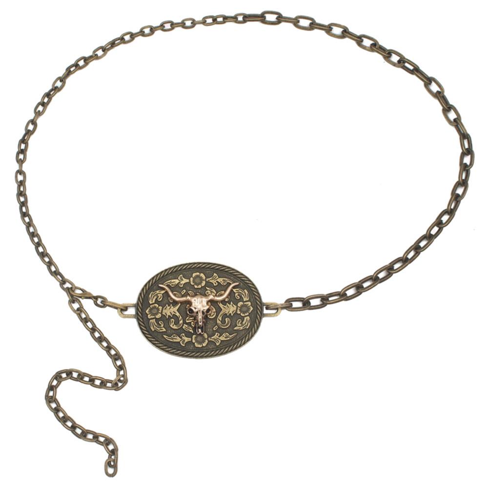LONGHORN COW SKULL OVAL CONCHO WESTERN CHAIN BELT