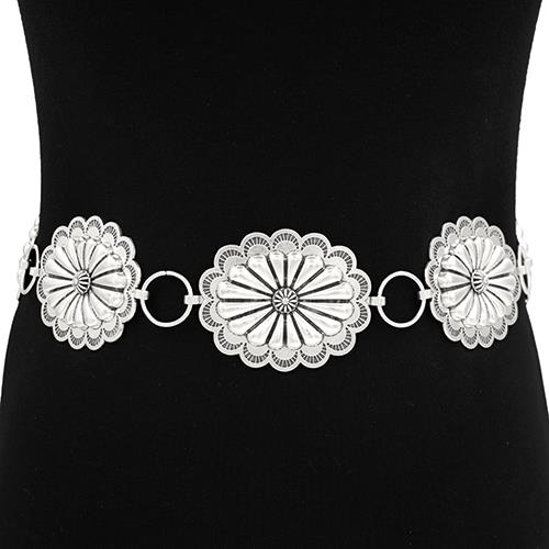 FLOWER EMBOSSED CONCHO CHAIN BELT