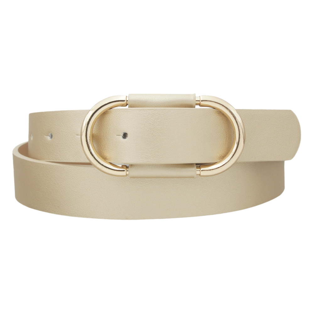 OVAL METAL BUCKLE FAUX LEATHER BELT