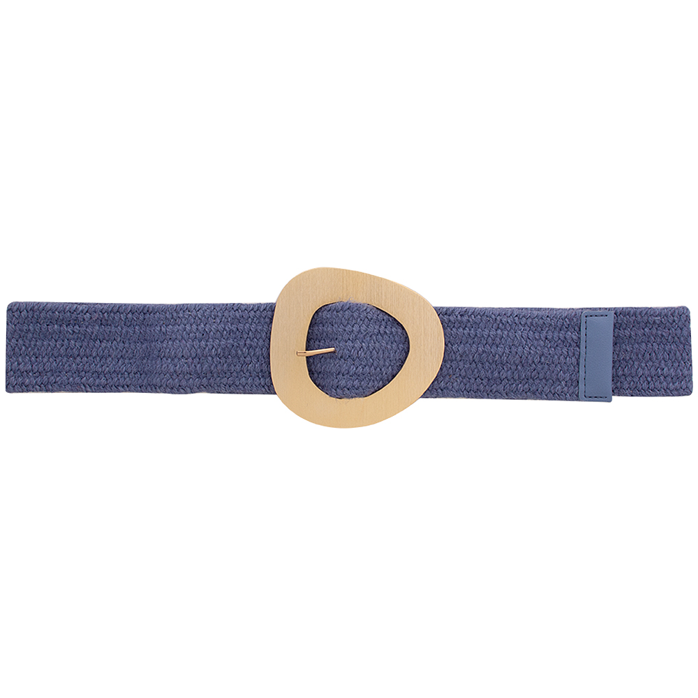 RAFFIA SOLID COLOR BELT WITH WOODEN BUCKLE