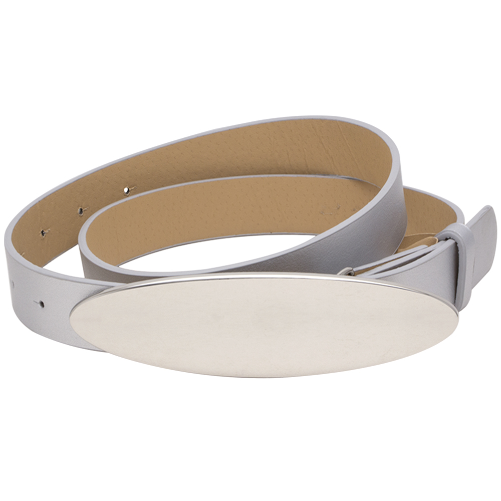 SHINY OVAL METAL GENUINE LEATHER BELT