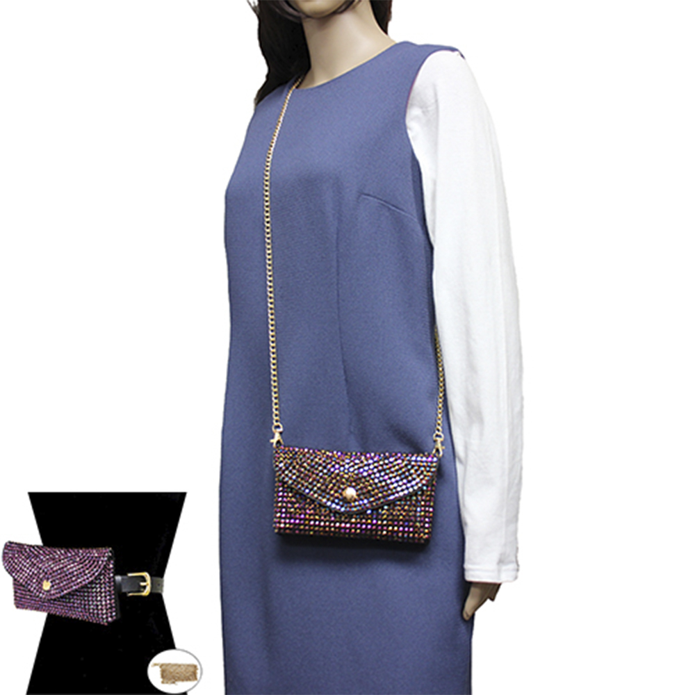 MULTI RHINESTONE DOUBLE RING BUCKLE BELT