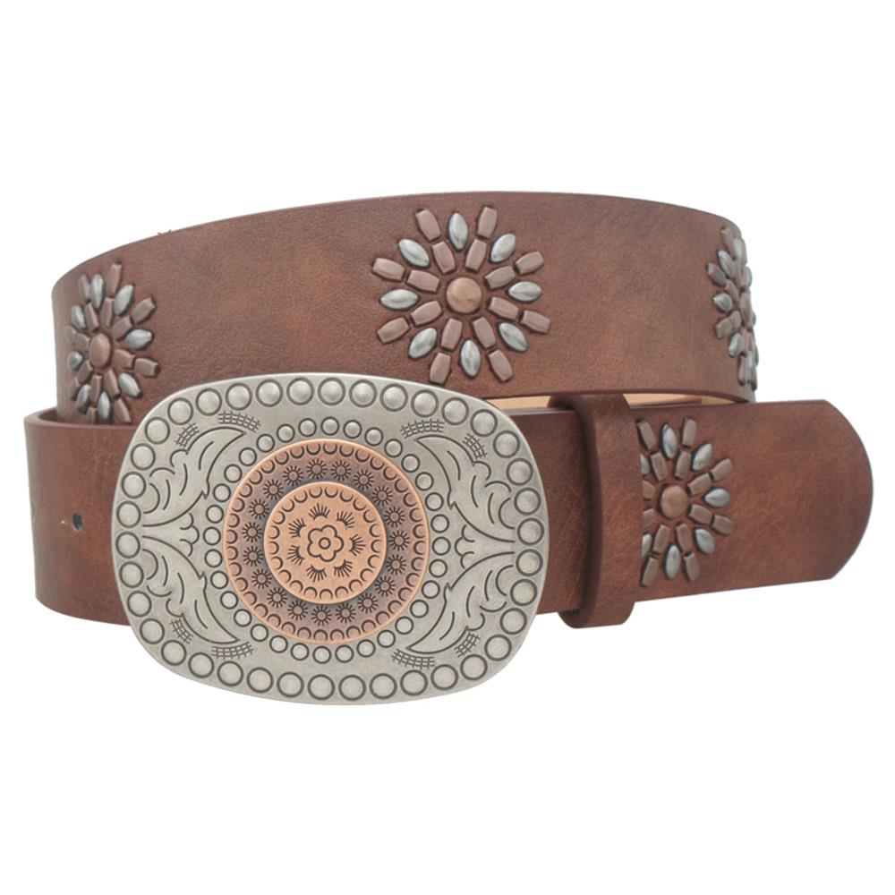 VINE EMBORIDERED FLOWER EMBOSSED OVAL BUCKLE BELT
