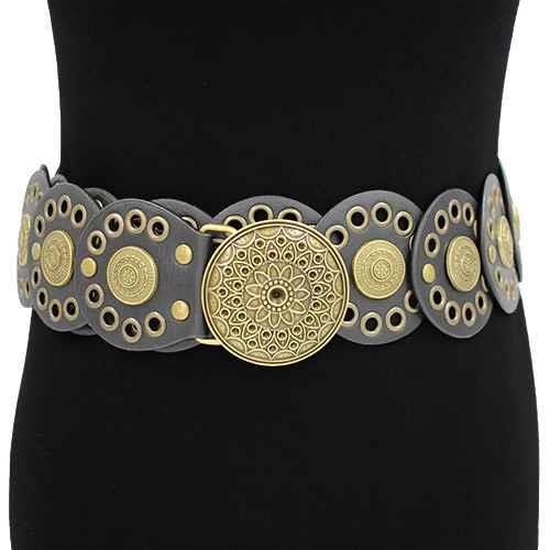 METAL ENGRAVED OVAL CONCHO CHAIN BELT
