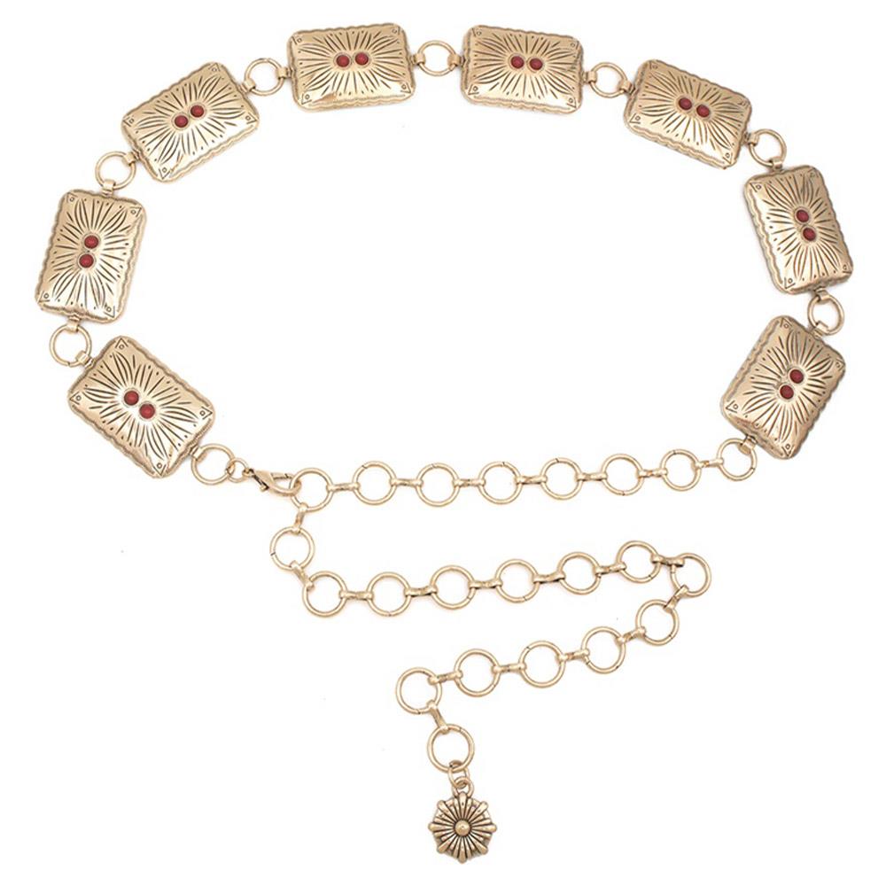 WESTERN CIRCLE SQUARE STONE ACCENT CONCHO CHAIN BELT