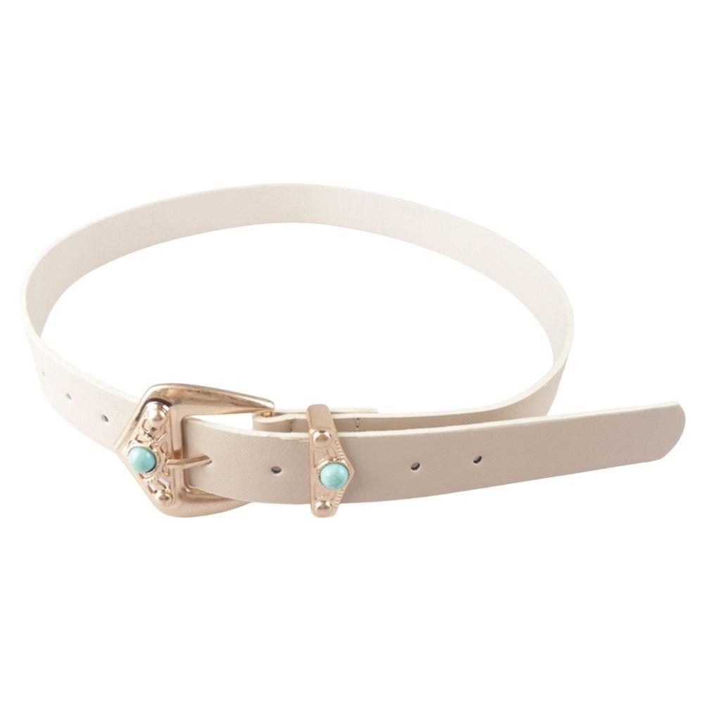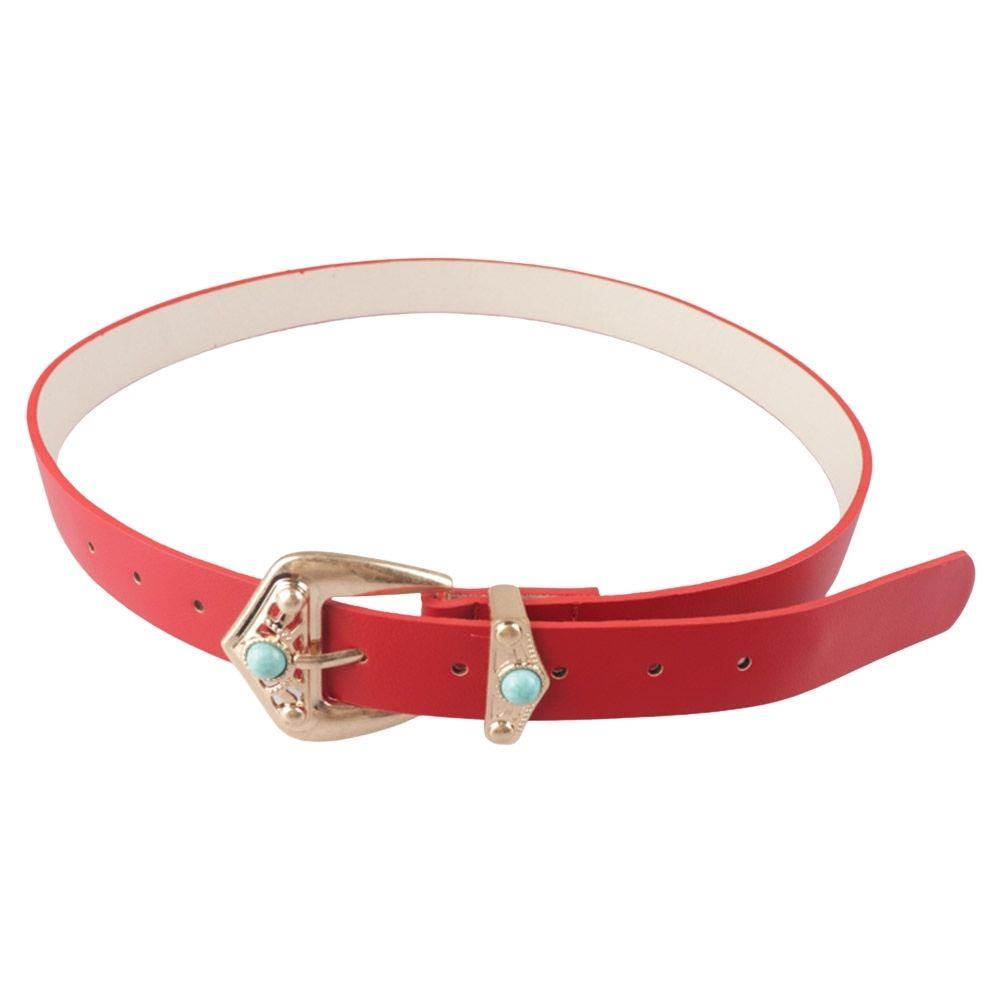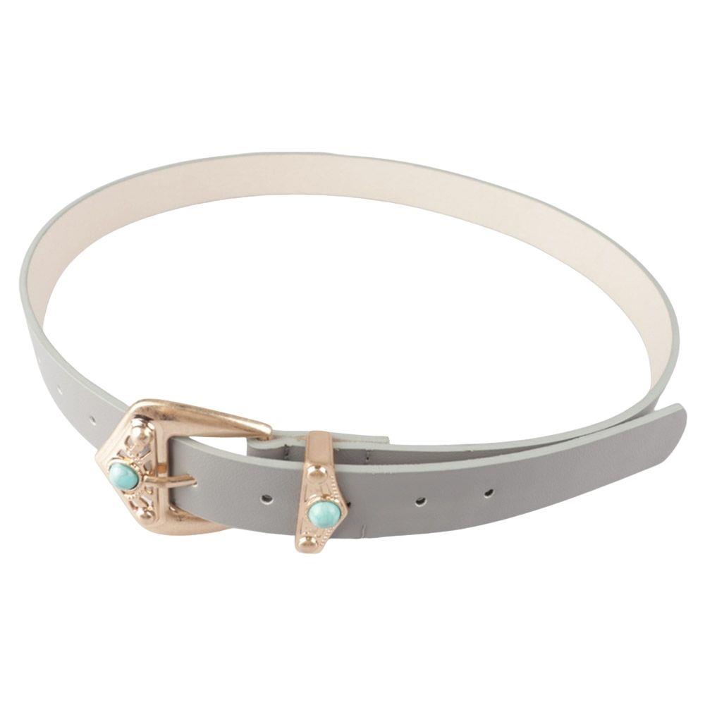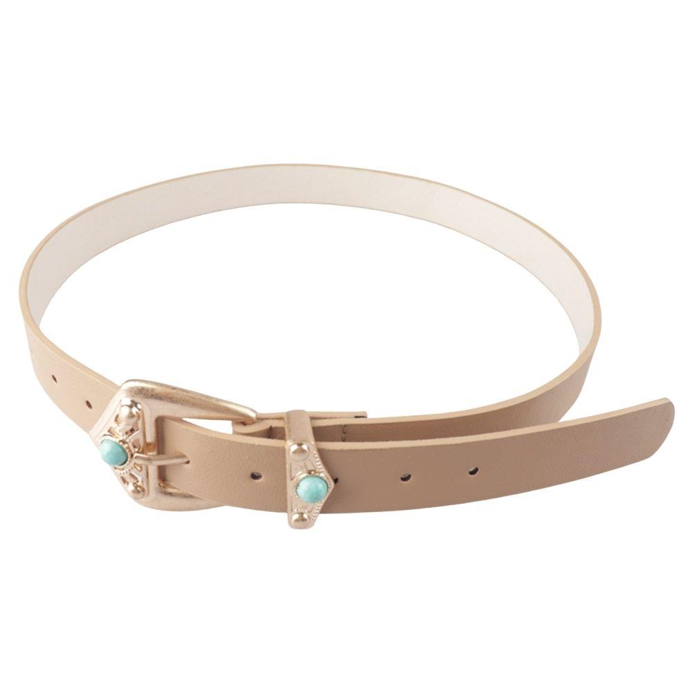 WESTERN FAUX LEATHER STONE BUCKLE BELT