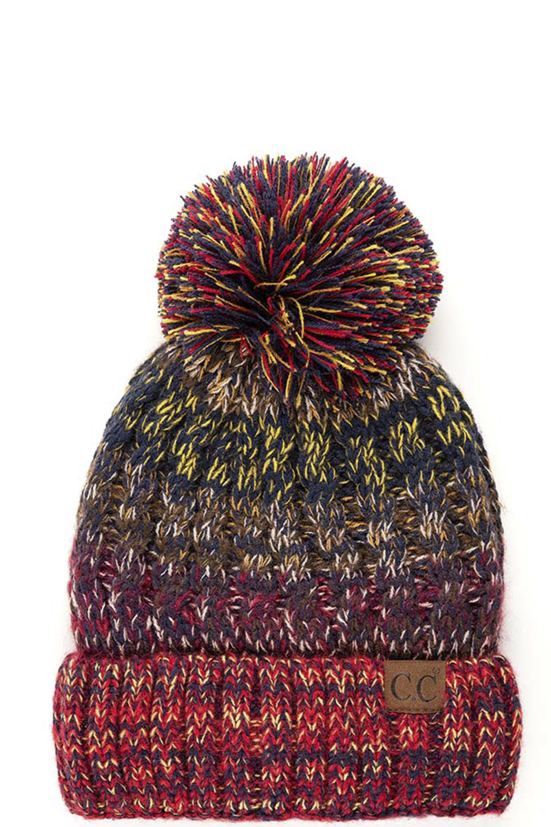 CC OMBRE DOUBLE SLIPSTITCH BEANIE HAT WITH POM