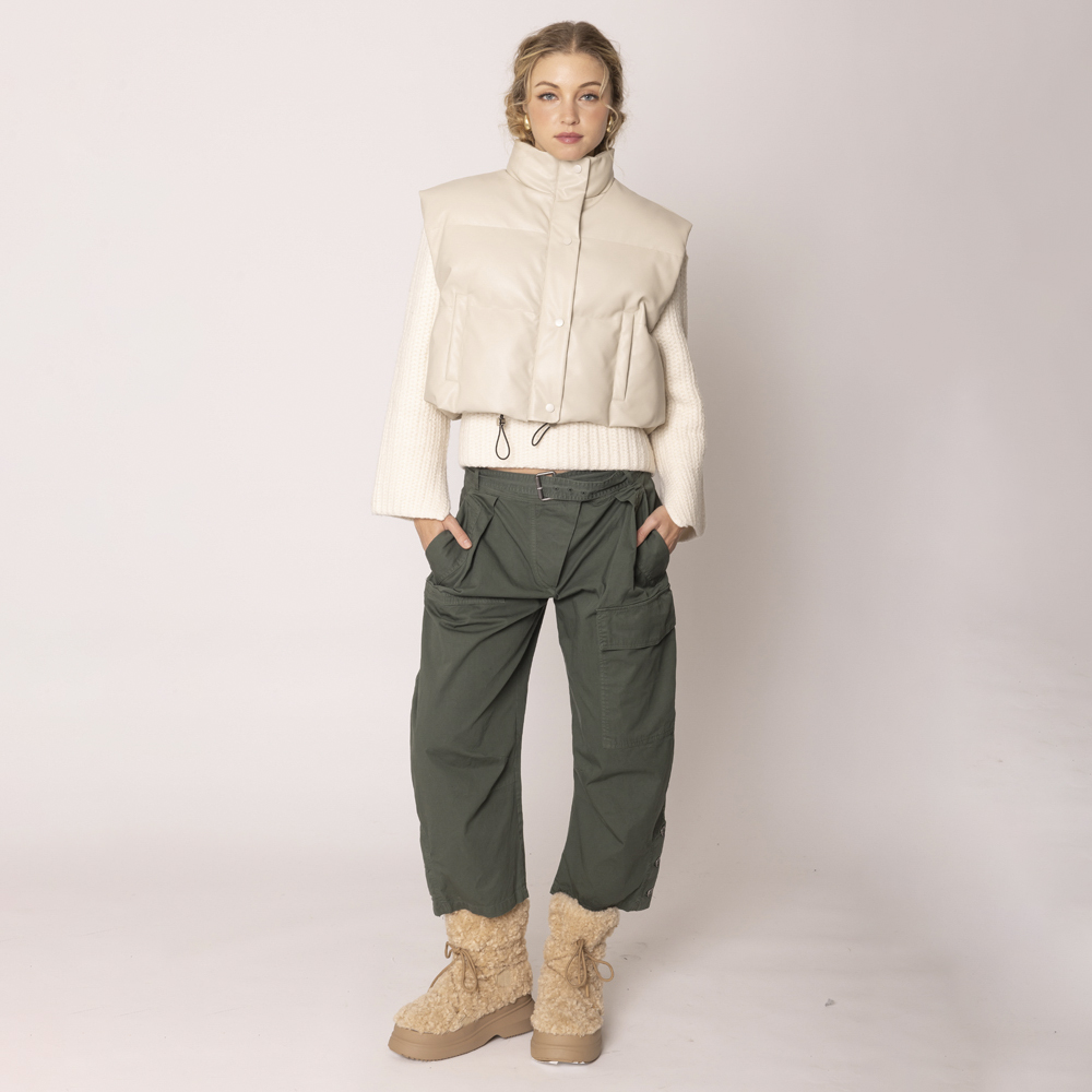 PLUSH CUFF FAUX LEATHER MITTEN GLOVES
