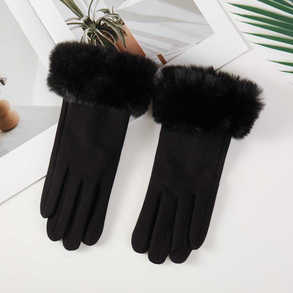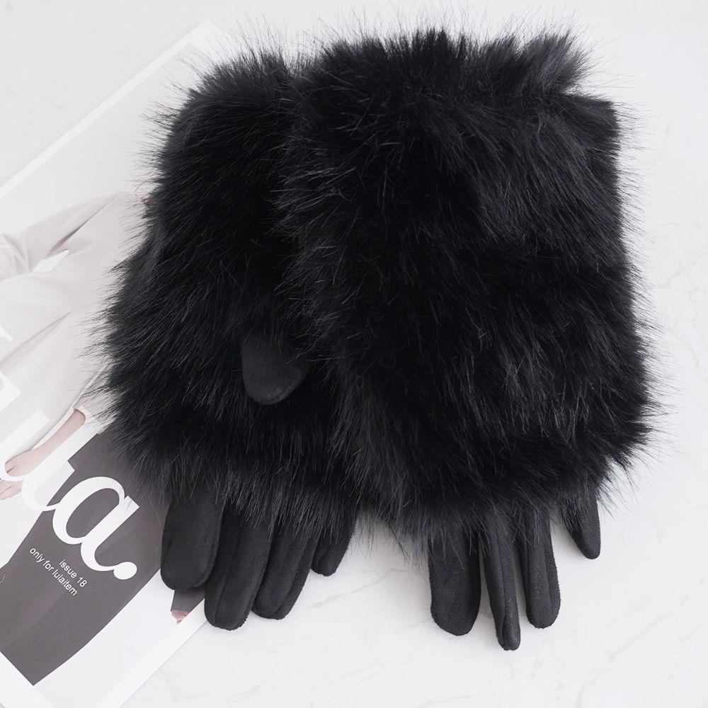 FAUX SUEDE FAUX FUR CUFF GLOVES