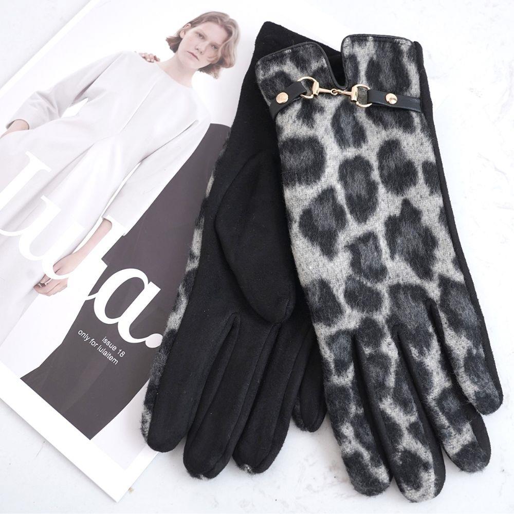 LEOPARD PATTERN BUCKLE ACCENT GLOVES