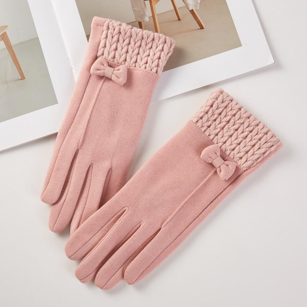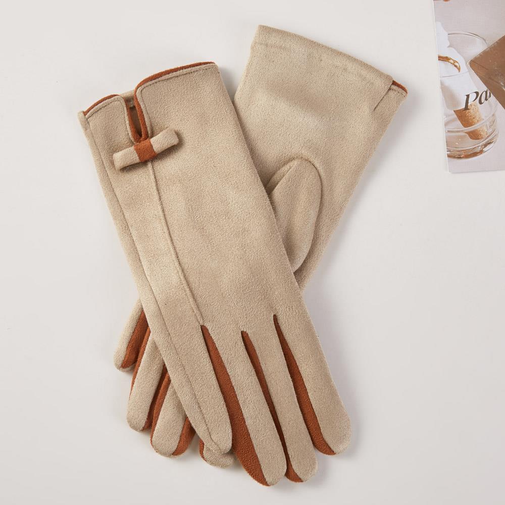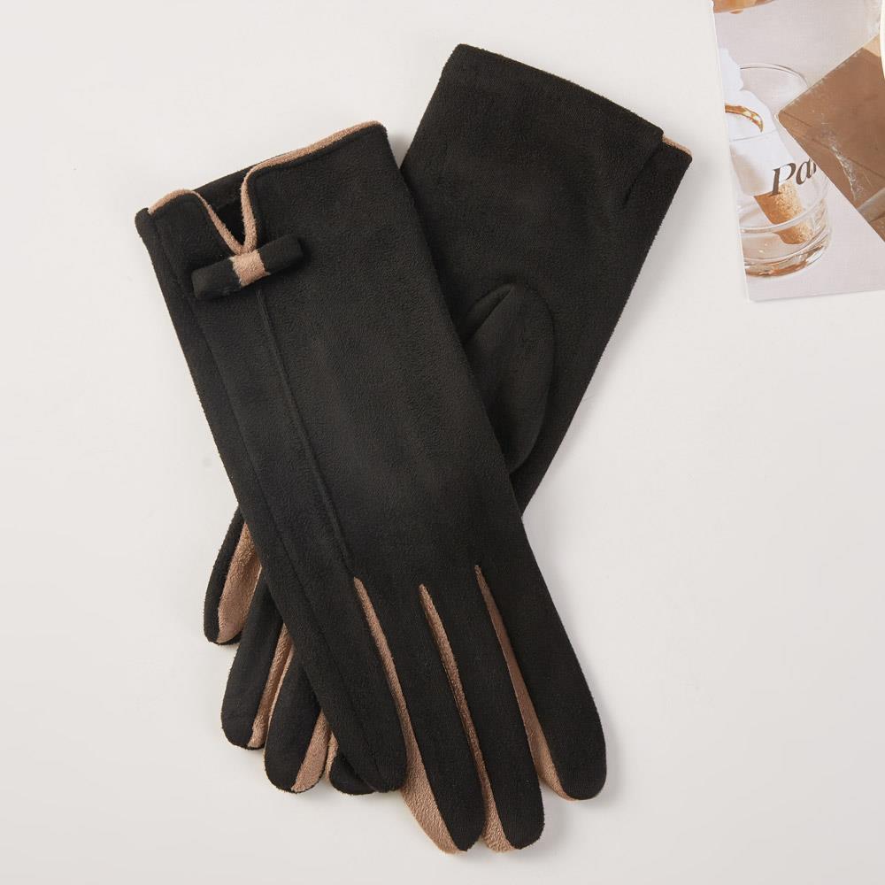 FAUX SUEDE BOW DETAIL TOUCHSCREEN GLOVES