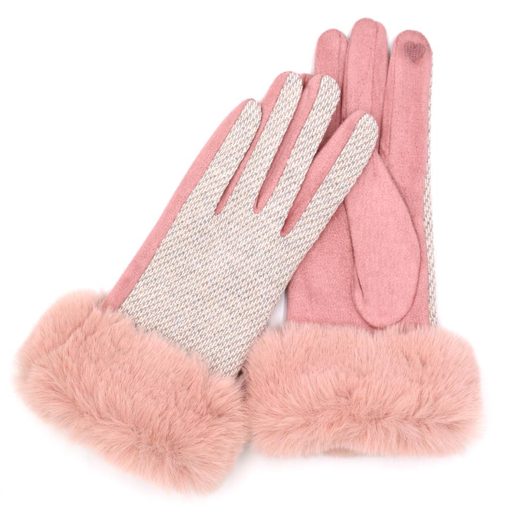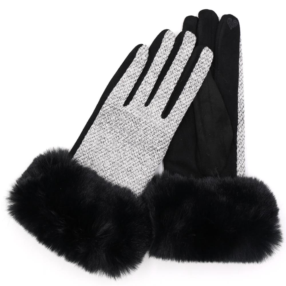 TWO TONES FAUX FUR SMART TOUCH GLOVES
