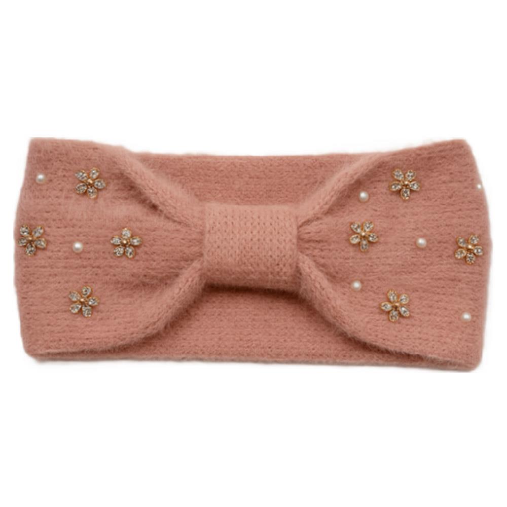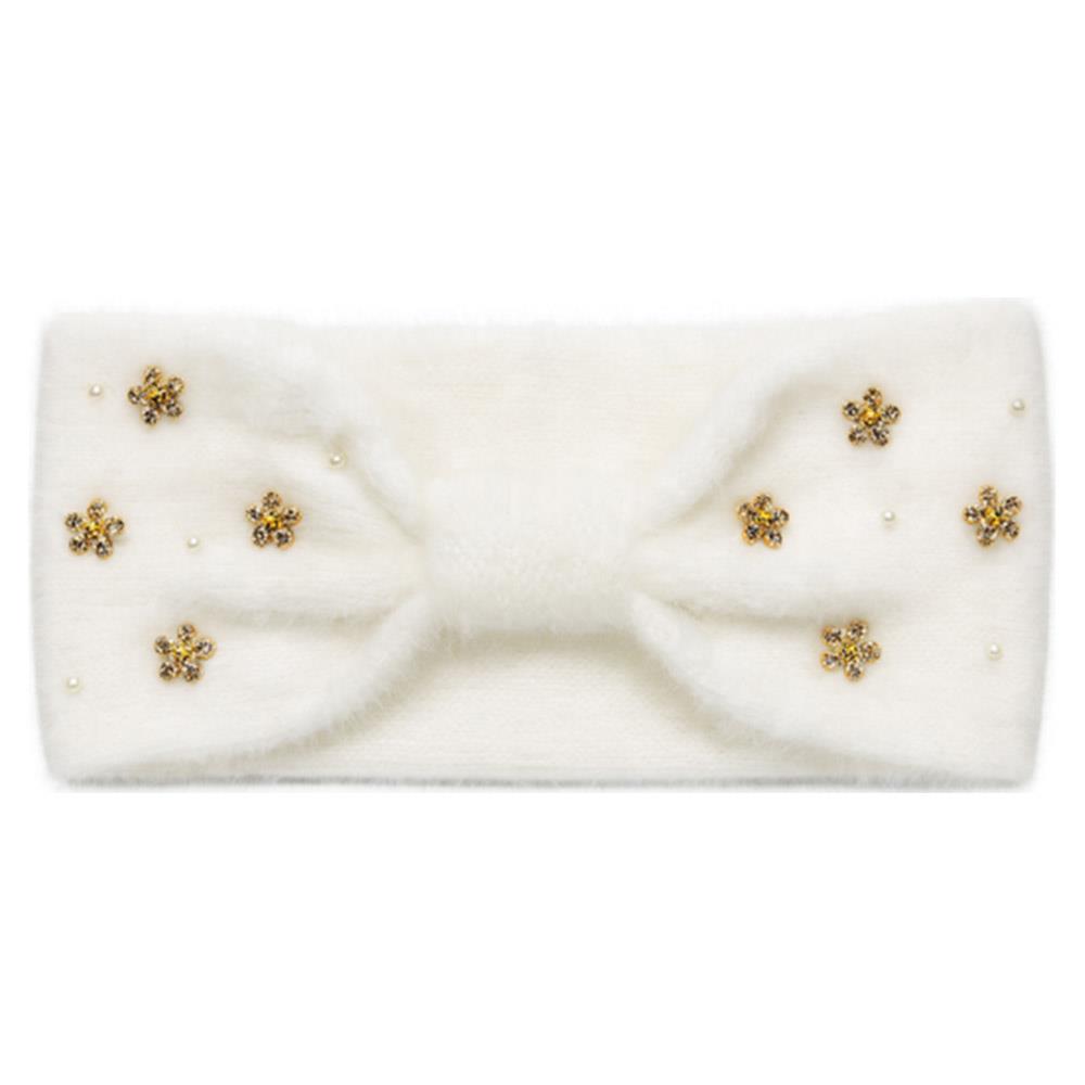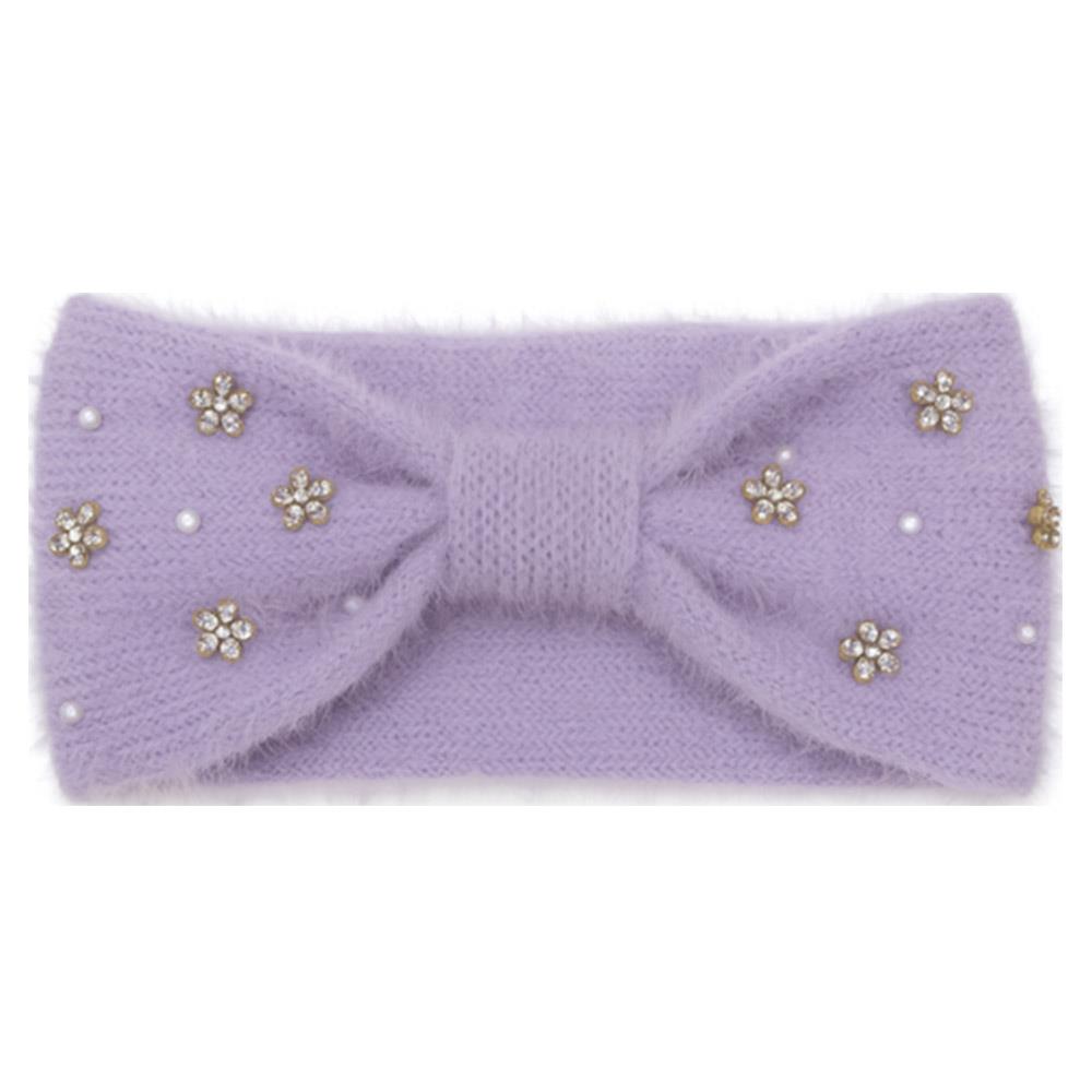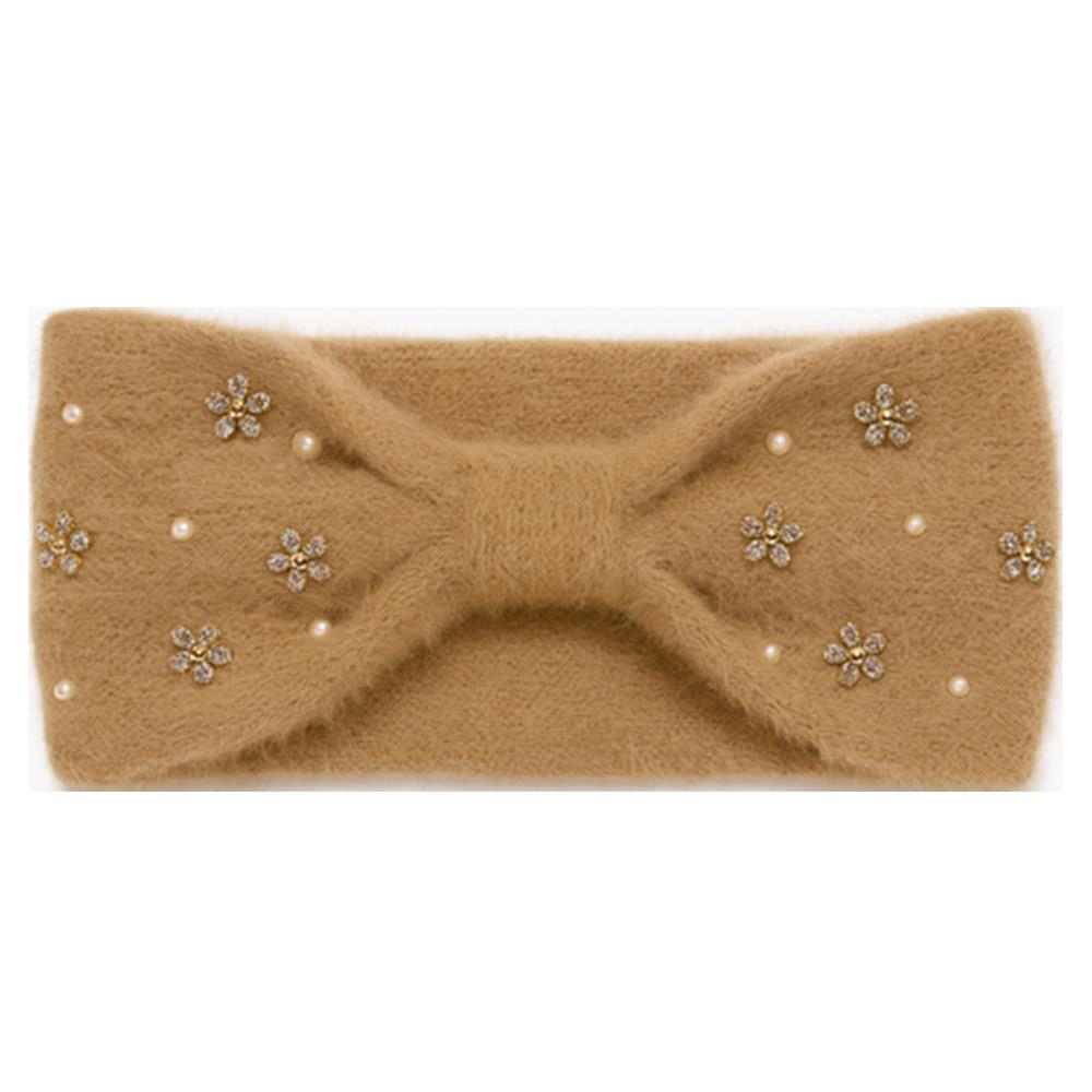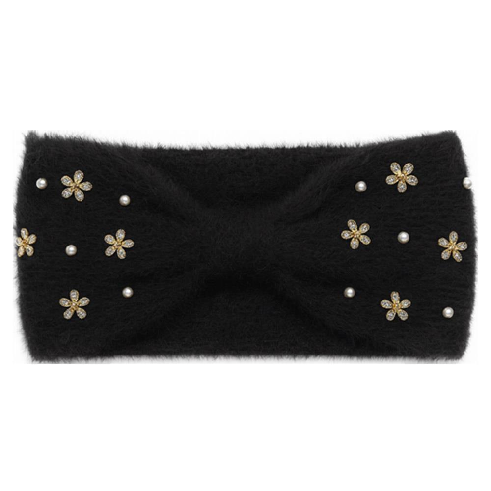 RHINESTONE ACCENT FUZZY KNIT HEADWRAP HEADBAND